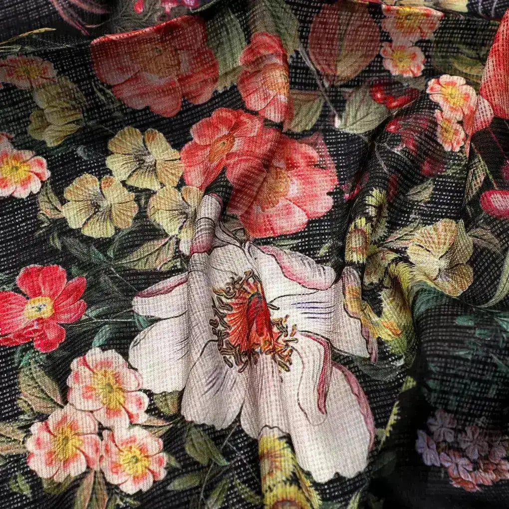 Flowers Laying on Black Base Digital Printed Kota Doria Fabric – kd 0 ta060980 111 flowers laying on black base digital printed kota doria fabric 1