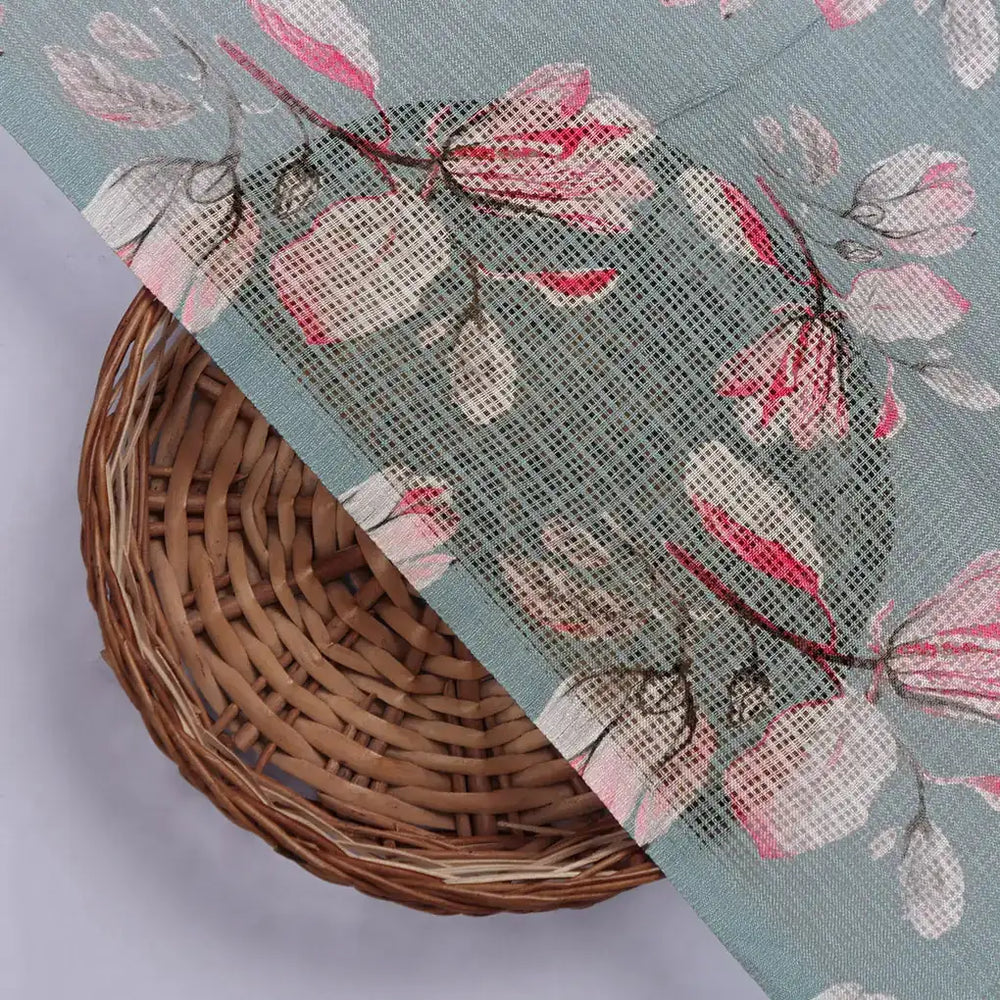 Kota Doria Fabric Material of Printed Floral Blooms