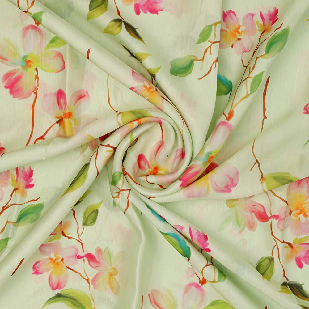 Floral Printed Dola Silk Fabric