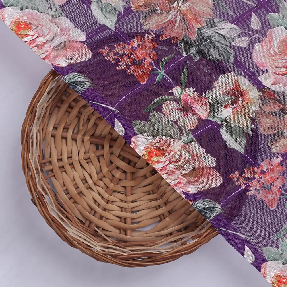 ₹ 339.00 per meterCaptivating Linen Fabric Adorned with Wine and Pink Floral Design