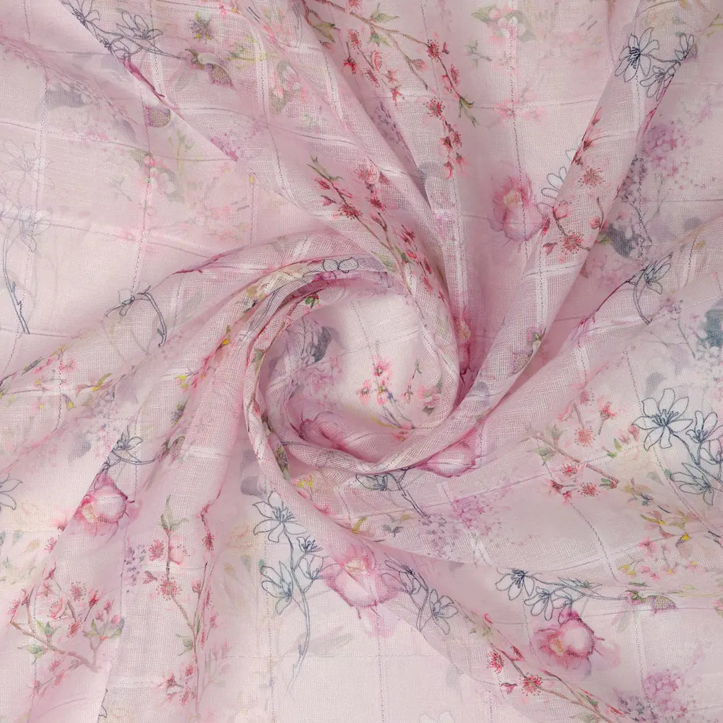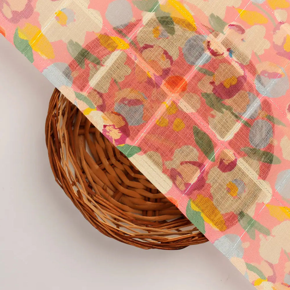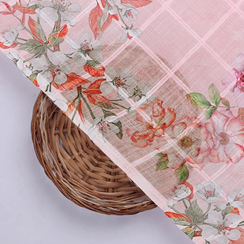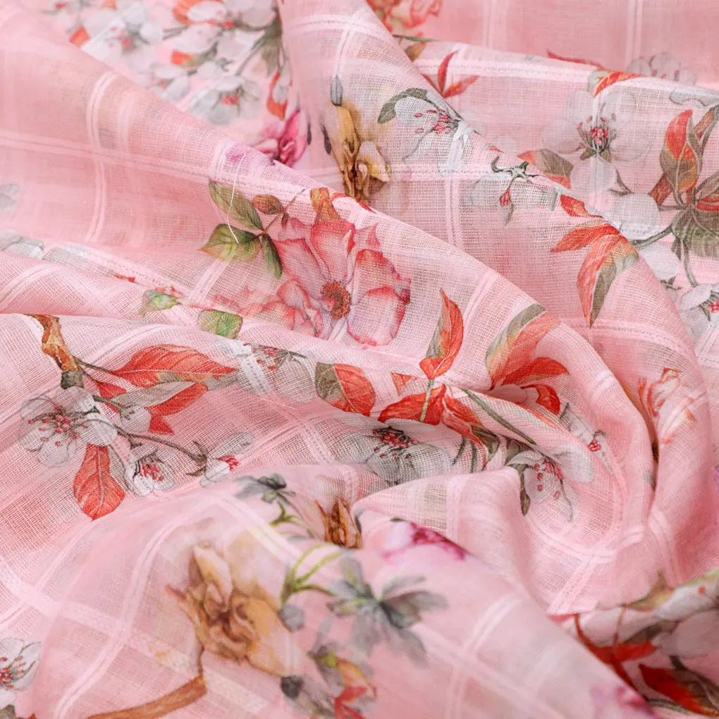 ₹ 289.00 per MeterPink Floral Printed Linen Fabric