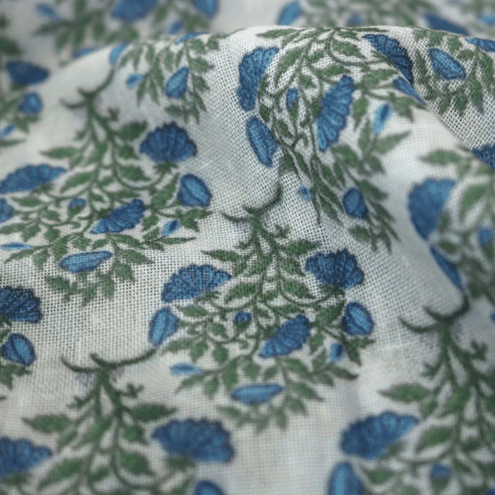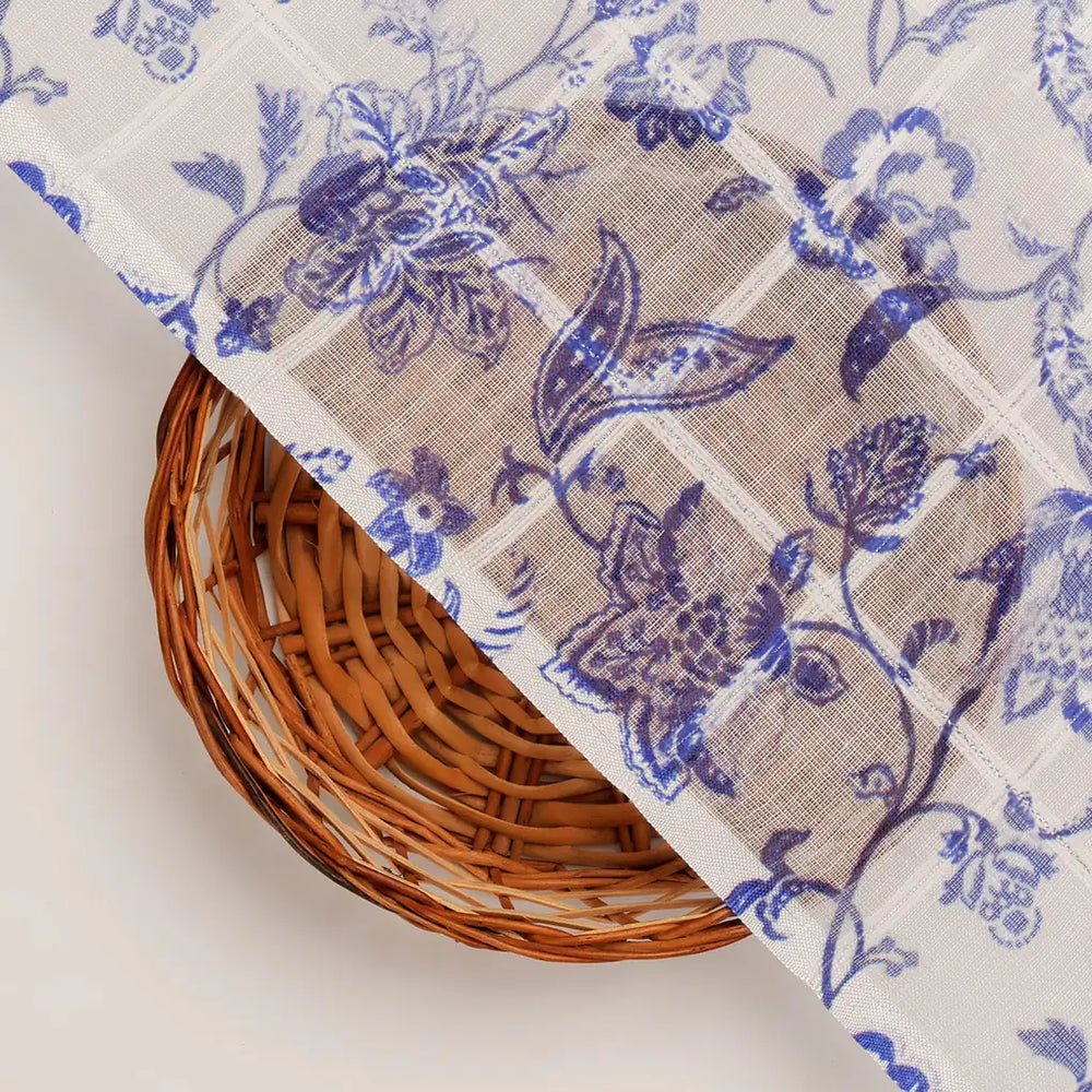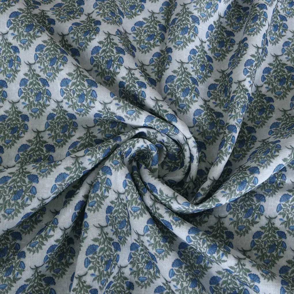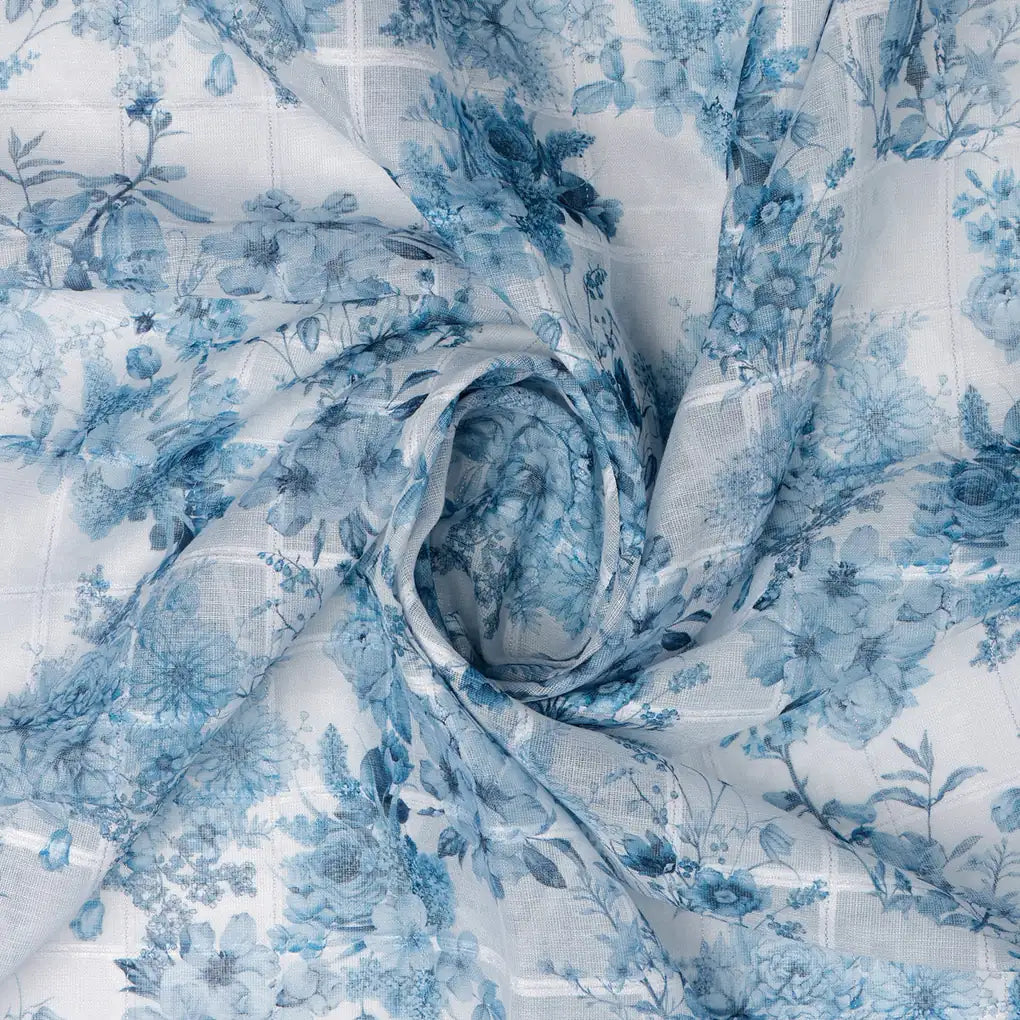 FAB VOGUE Studio Digital Printed Linen Fabric - Blue & White Floral