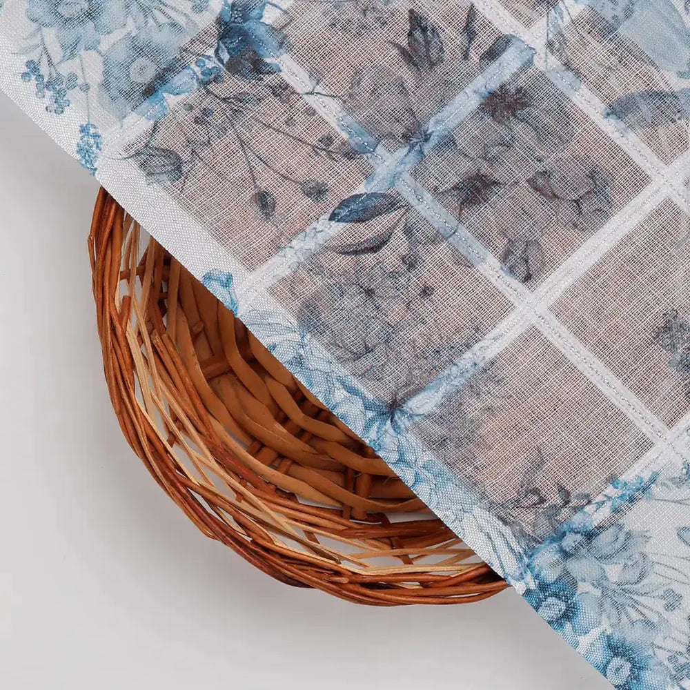 Gorgeous Linen Fabric Awash in Blue and Cream with Enchanting Floral and Leaves Print