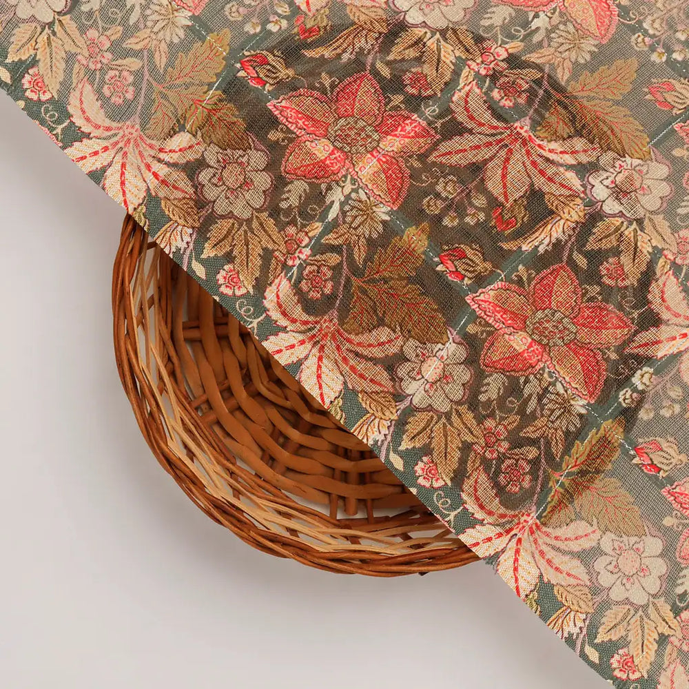 ₹ 296.00 per MeterGreen Floral Printed Linen Fabric