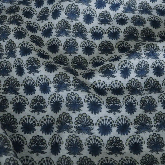 ₹ 289.00 per MeterFAB VOGUE Studio Linen Digital Printed Polyester Fabric - White & Blue Floral