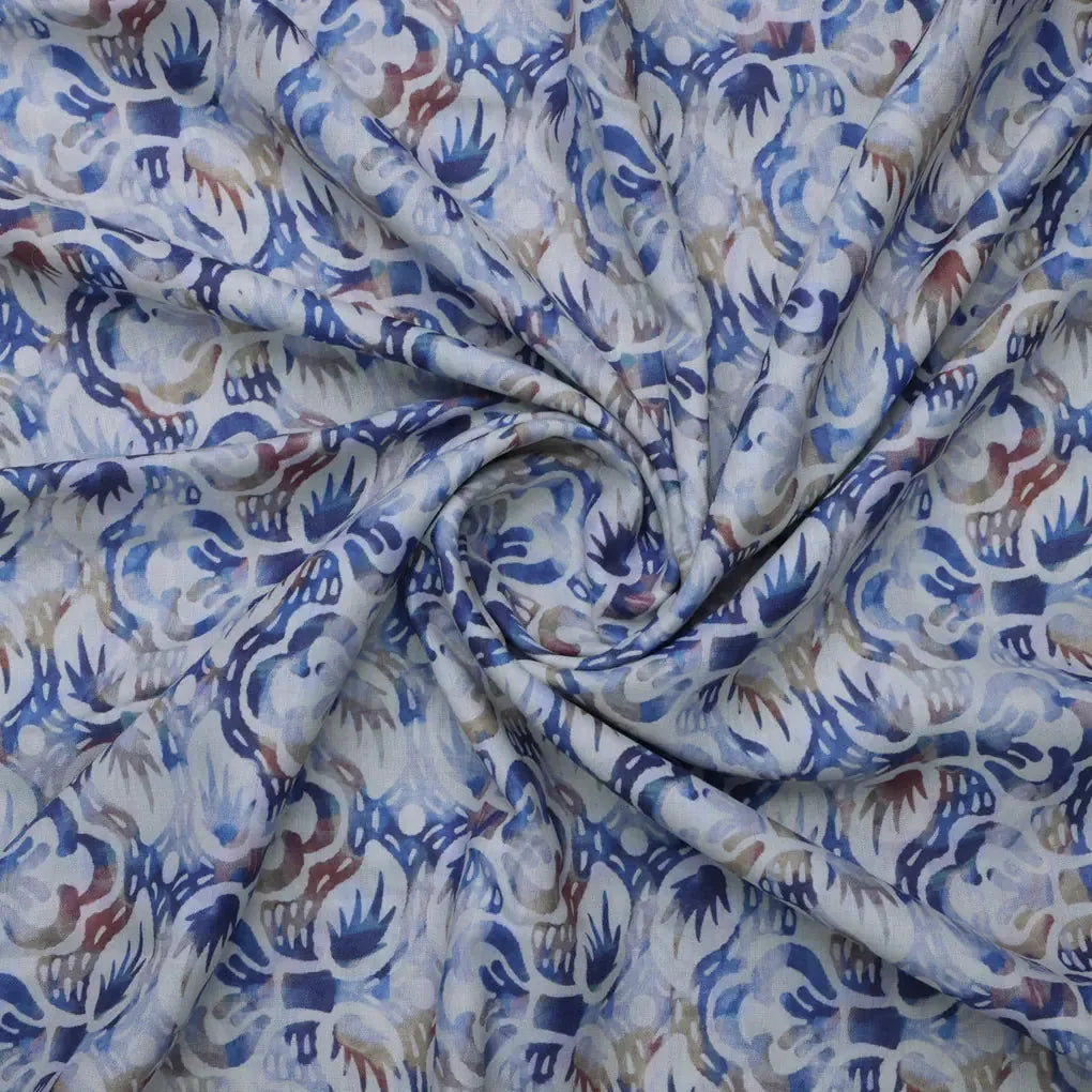 This blue and brown floral printed linen fabric is perfect for summer. It is lightweight and breathable, making it ideal for dresses, skirts, and pants. The floral print is delicate and feminine, and the colors are versatile and easy to match. This fabric is also durable and easy to care for, making it a great choice for busy families.