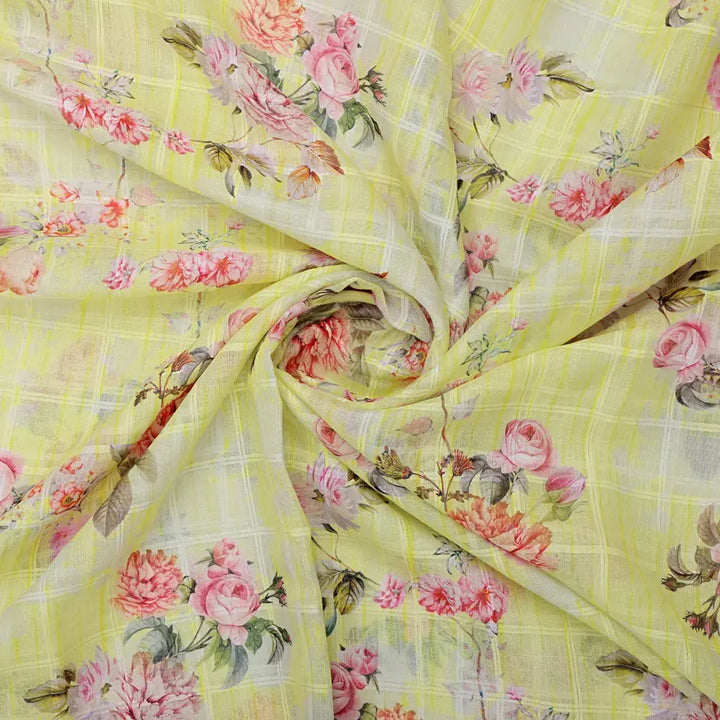 Introducing our exquisite Decorative Flower Velly fabric from FAB VOGUE Studio, featuring a captivating digital print of vibrant floral motifs in shades of yellow and multicolor. Crafted from premium linen, this fabric offers both durability and a luxurious texture, making it ideal for creating elegant curtains, chic upholstery, and stylish garments.