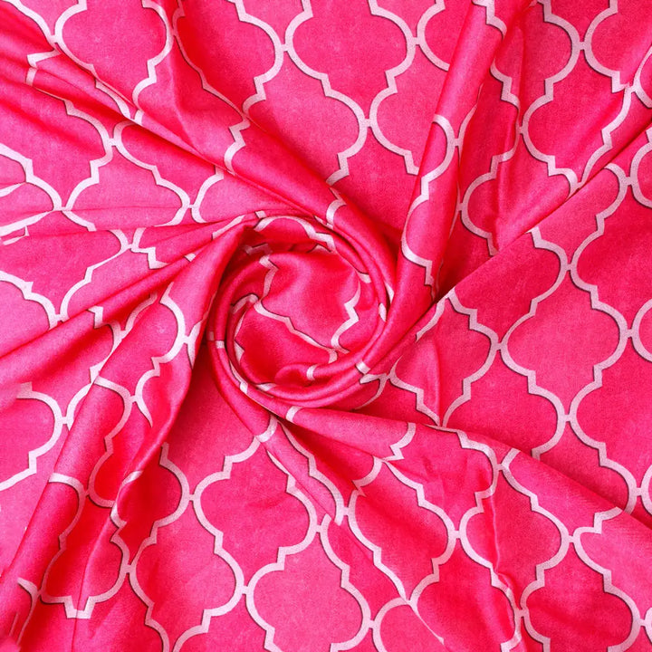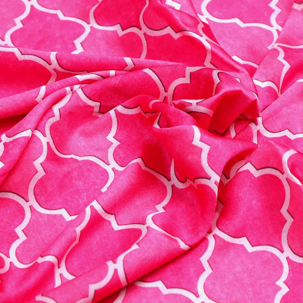 FAB VOGUE Studio presents a gorgeous pink Ogee digital printed fabric. This fabric is made of Japan Satin and is perfect for making dresses, skirts, tops, and other garments. It is also great for home decor projects. The Ogee design is both stylish and classic, and the pink color is sure to add a touch of elegance to any project. Order yours today!
