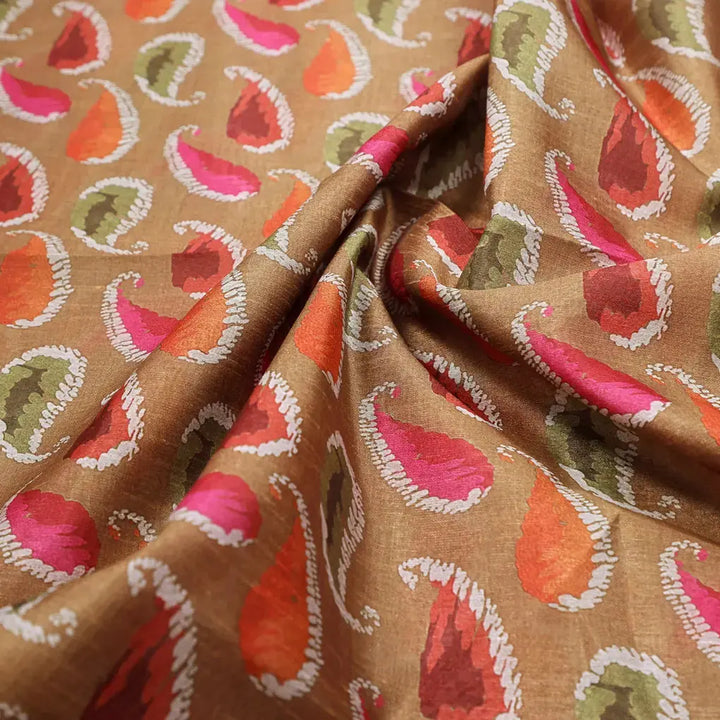 Tusser Silk Fabric Material with Colorful Paisley Print
