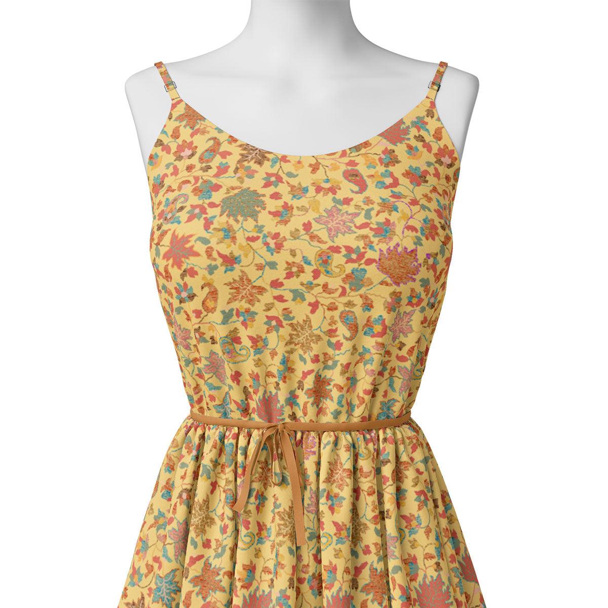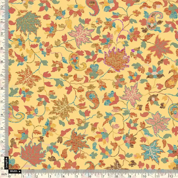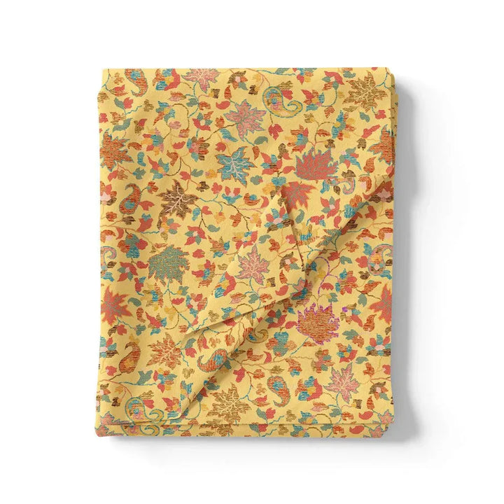FAB VOGUE Studio offers a wide range of yellow paisley printed fabric made of polyester pashmina. This beautiful fabric is perfect for making shirts, blouses, and other garments. The fabric is lightweight yet durable, offering a luxurious feel. The yellow leafs pattern gives it a unique look and makes it stand out among other fabrics. The fabric is also easy to care for and can be machine washed. Whether you're looking for a fabric to make a statement or just something to add a bit of color to your wardrobe, this fabric is sure to be a winner.