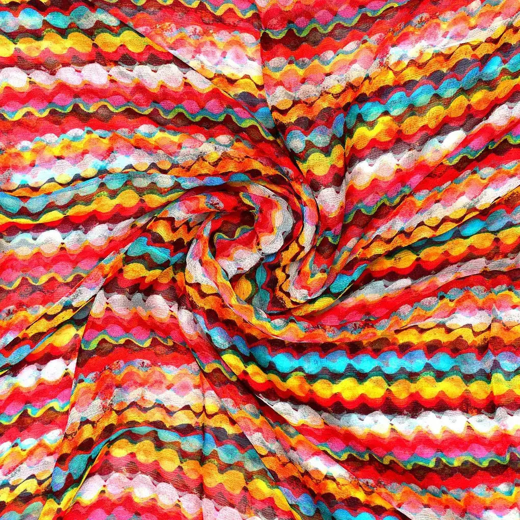 ₹ 550.85 per meterAttractive Polka Dot With Strips Digital Printed Fabric - Pure Chiffon