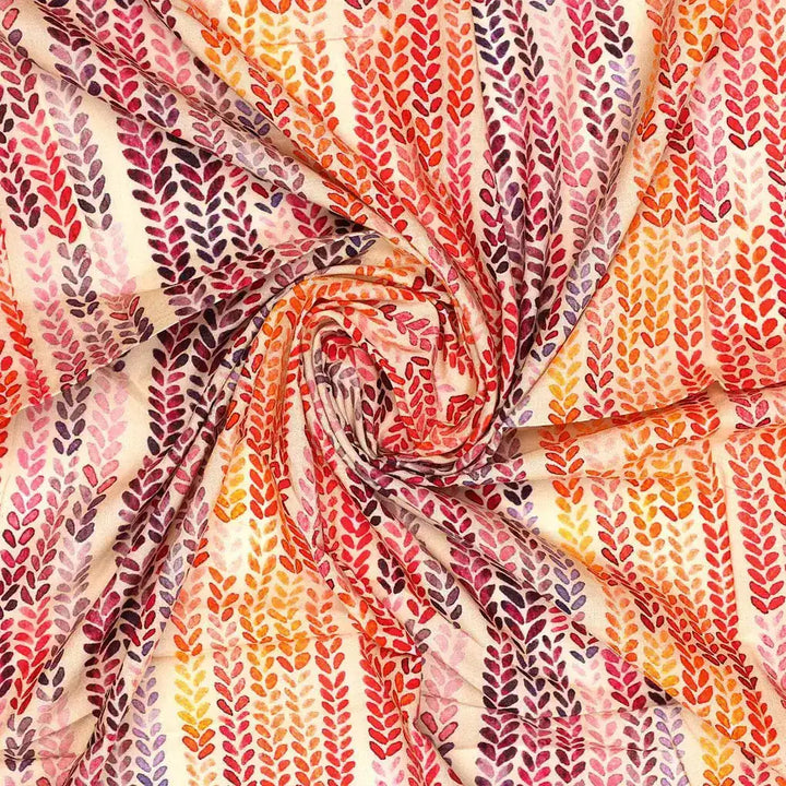 Introducing the Bird Eyes Pattern Pure Cotton Kurtis Printed Fabric by FAB VOGUE Studio. This digital printed fabric is made of pure cotton, and features a beautiful multicolor leaves pattern. The fabric is soft and lightweight, perfect for creating stylish and comfortable kurtis. The vibrant colors will make any outfit stand out, and you can be sure that the fabric is of the highest quality. With this fabric, you can create a unique and eye-catching look that will turn heads wherever you go. Get your hands on this gorgeous fabric today and create your own one-of-a-kind masterpiece.