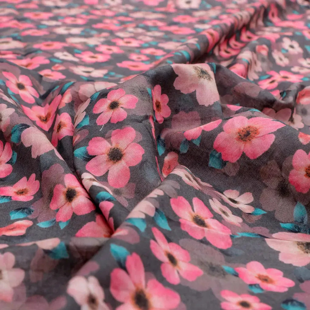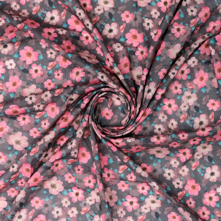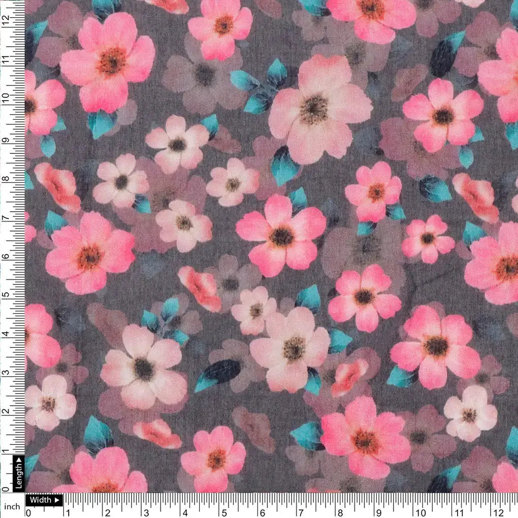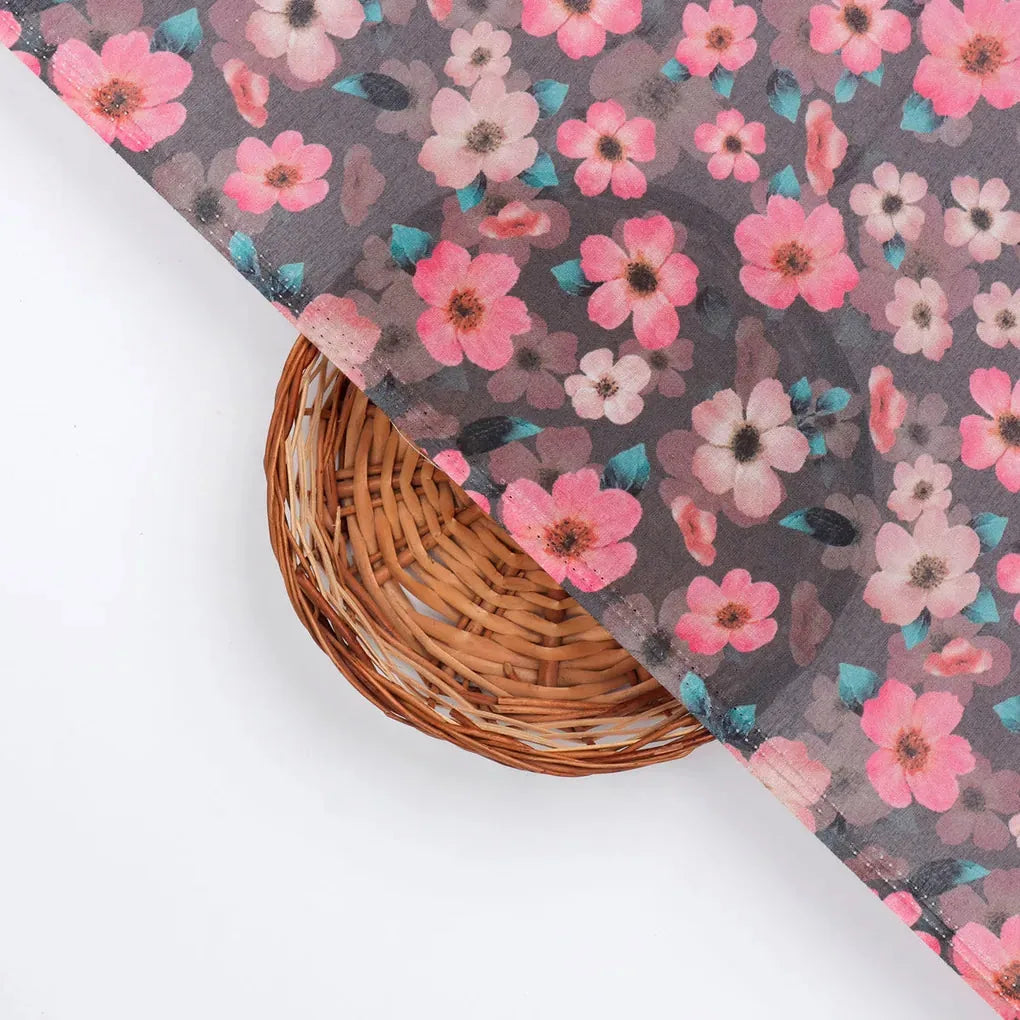 Buttercup Pink Floral Digital Printed Fabric - Pure Cotton