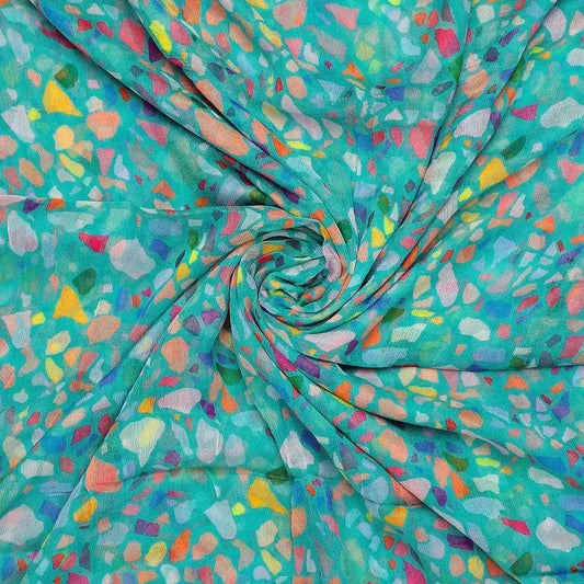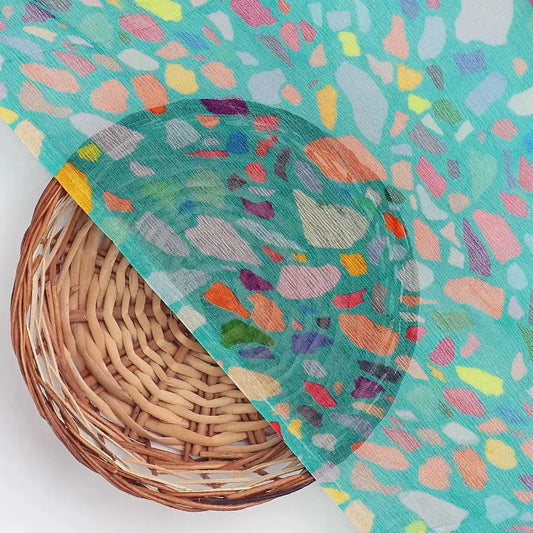 Geometric Colourful Water paint Digital Printed Fabric - Pure Muslin