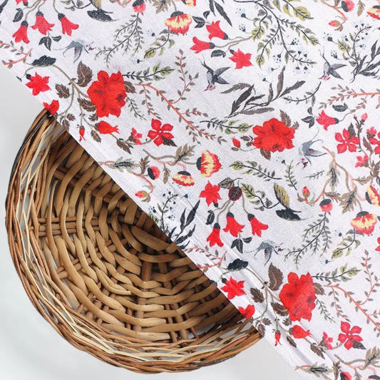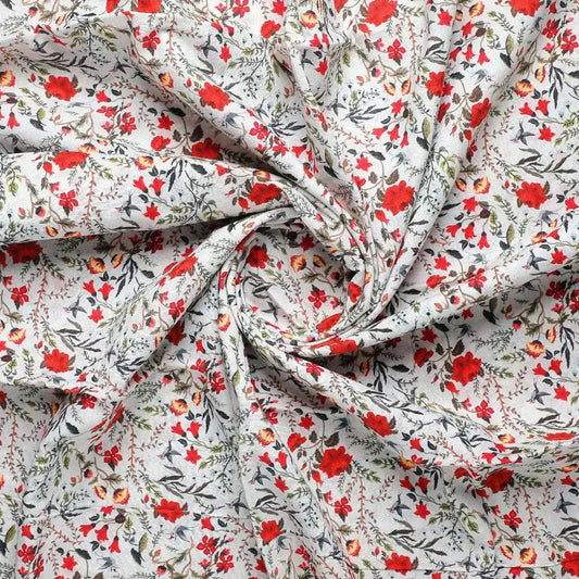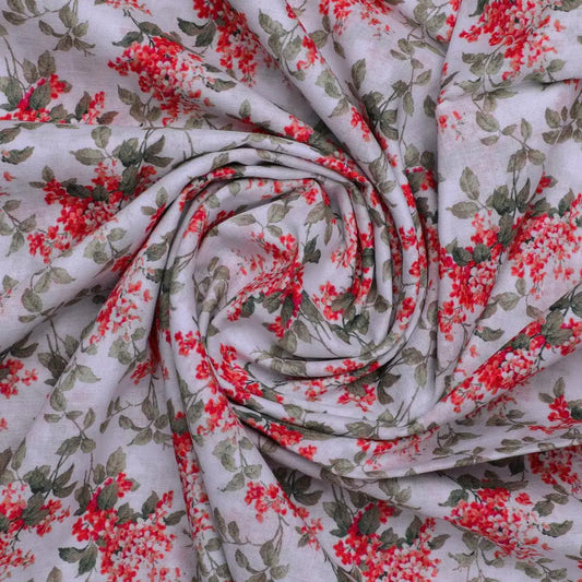 ₹ 562.35 per meterSeamless Opposite Red Flower Pattern Digital Printed Fabric - Cotton