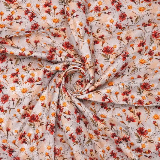 ₹ 562.35 per meterLovely Chrysanthemum Golden With Hemlock Flower Digital Printed Fabric - Cotton