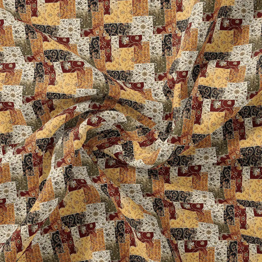 Traditional Elephant Motif Digital Printed Fabric - Pure Georgette