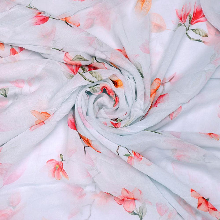 FAB VOGUE Studio presents Green Flower Unstitched Pure Georgette Printed Fabric for Gown. This fabric is made from Viscose of the highest quality and is perfect for making a beautiful gown. The fabric is digitally printed with a gorgeous floral pattern and comes in a vibrant green color. It is lightweight and comfortable to wear, making it ideal for special occasions. Shop now and get the perfect look for your next event.