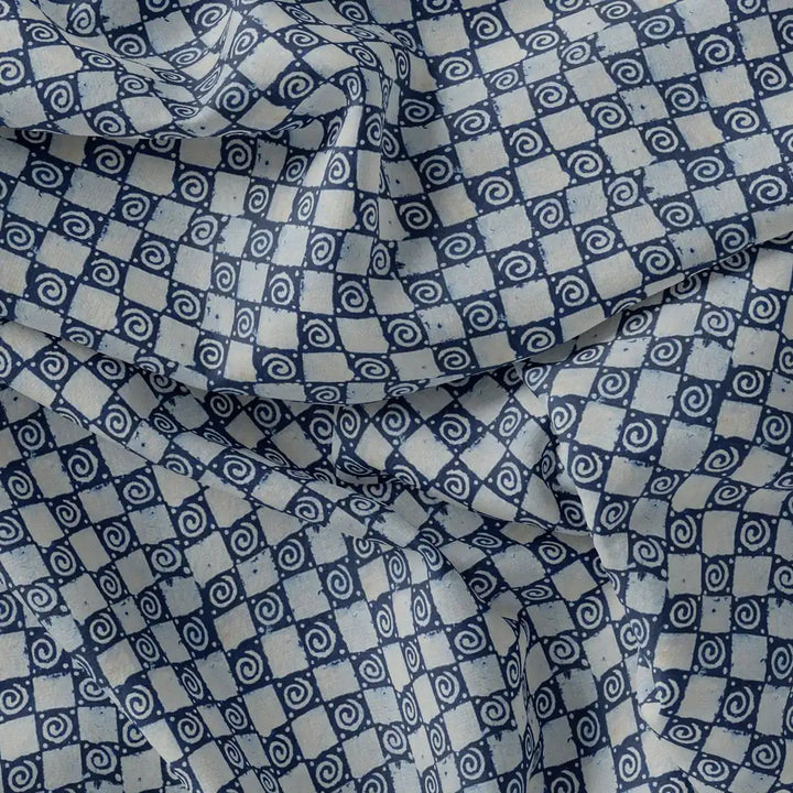 Classic Round With Checks Digital Printed Fabric - Pure Muslin