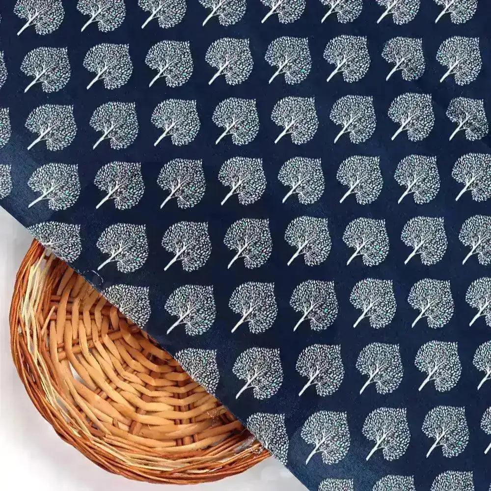 ₹ 562.35 per meterTiny Blue Medallion Motif Digital Printed Fabric - Pure Muslin