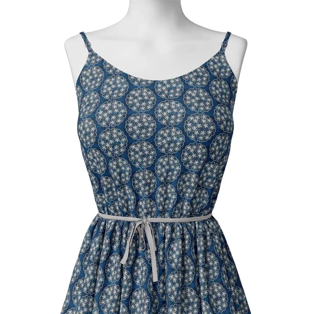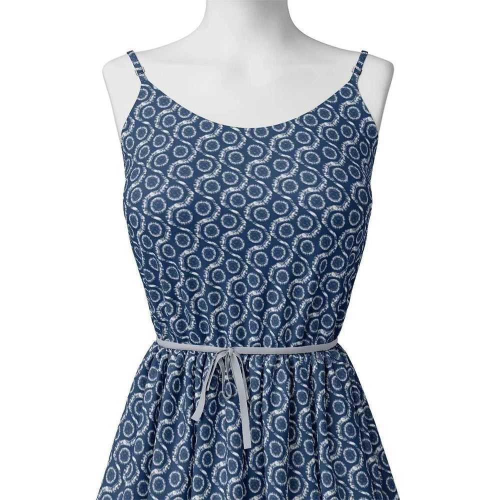 Tiny Blue Medallion Motif Digital Printed Fabric - Pure Muslin