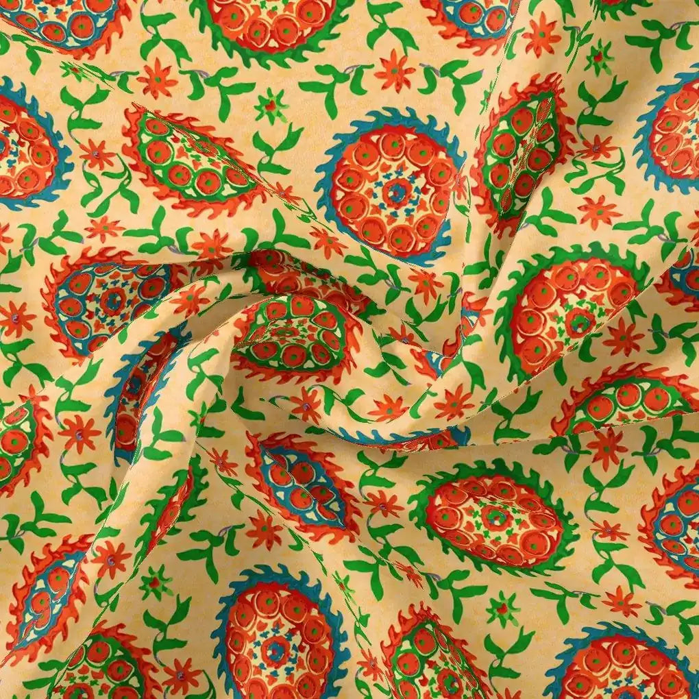 Damask Patterns On Yukon Gold Digital Printed Fabric - Pure Muslin