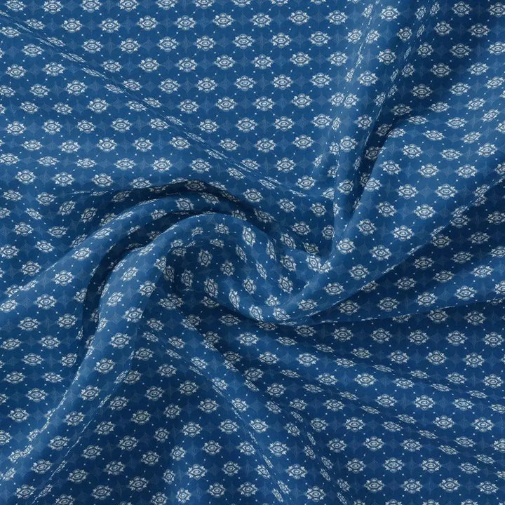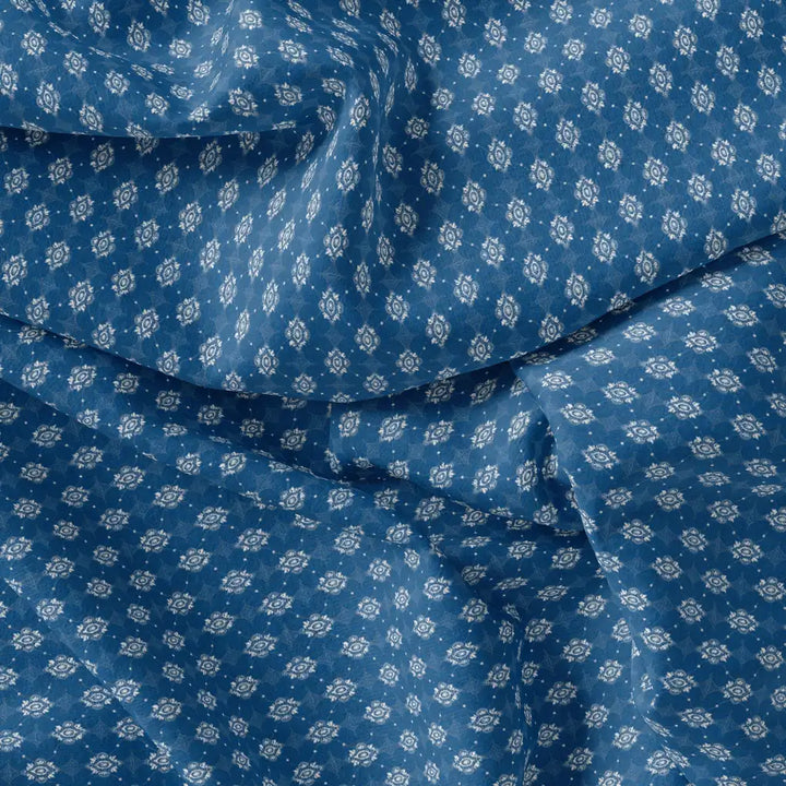 Make a style statement with this Morden Repeat Bird Eyes Pattern Rayon Top Printed Fabric from FAB VOGUE Studio. This digital printed fabric is made from high-quality polyester and rayon, making it lightweight and breathable. The fabric has a decorative pattern in blue color, adding a touch of elegance to your outfit. It's perfect for making tops, shirts, and other garments. Get this fabric now to make your own unique style statement.