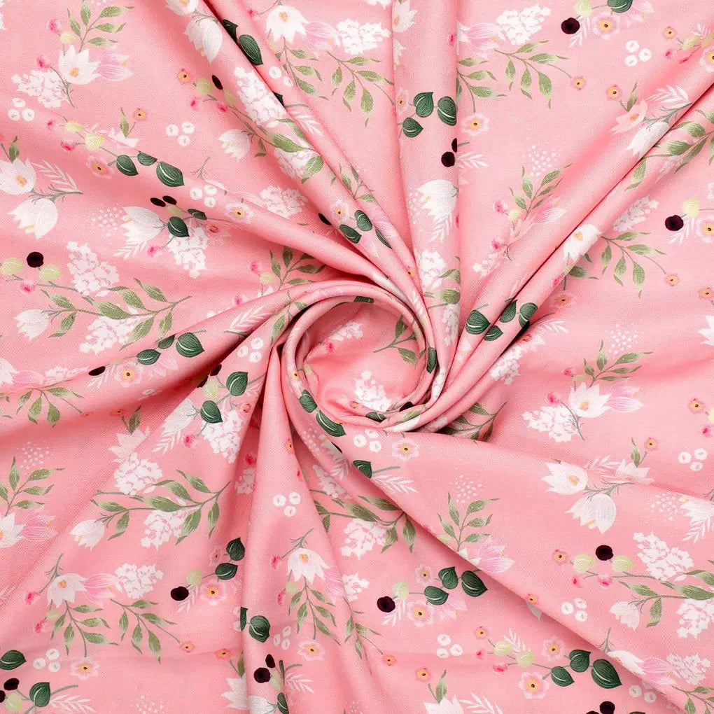 Classy and Attractive Pink Floral Digital Printed Rayon Fabric