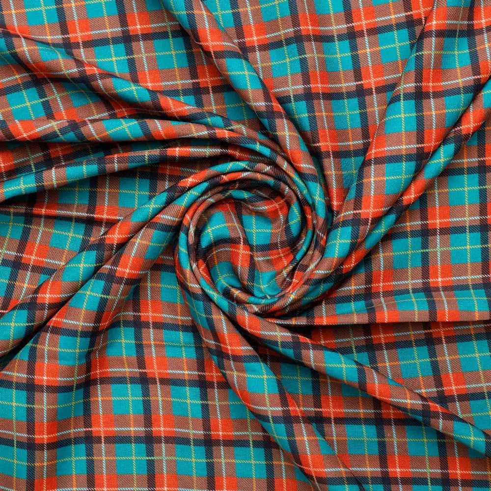 Morden Browny Checkered Digital Printed Fabric - Rayon
