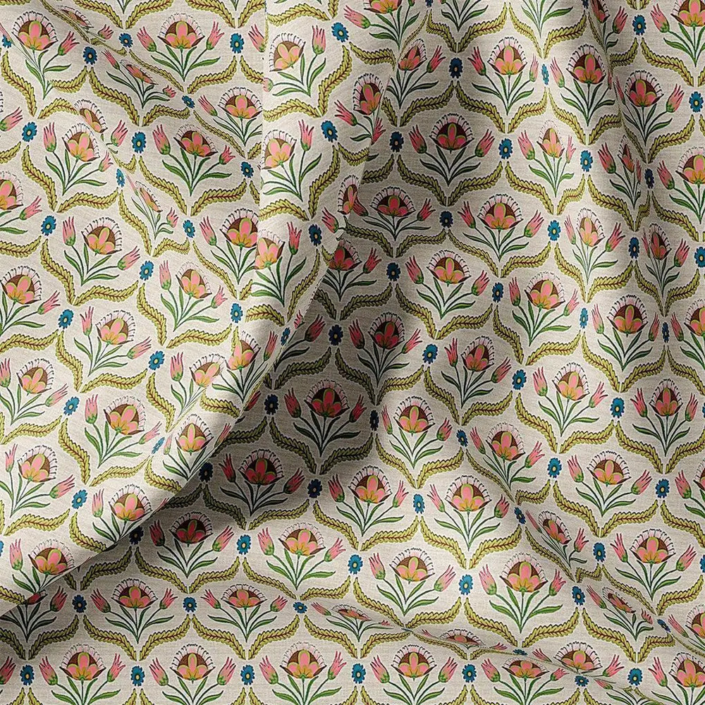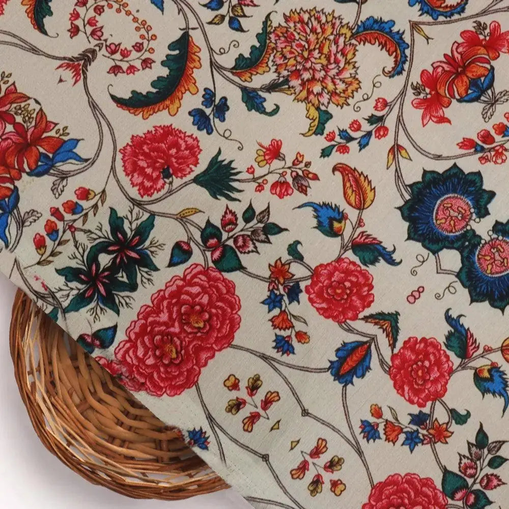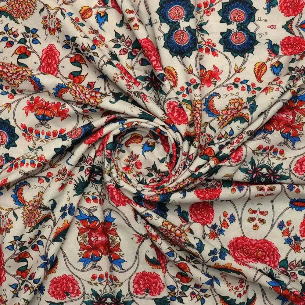 Decorative Floral Vintage Art Digital Printed Fabric - Rayon