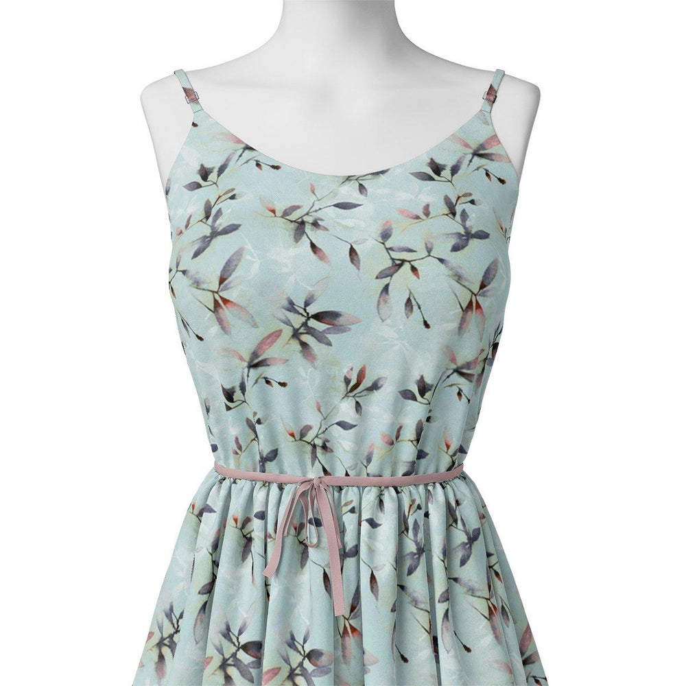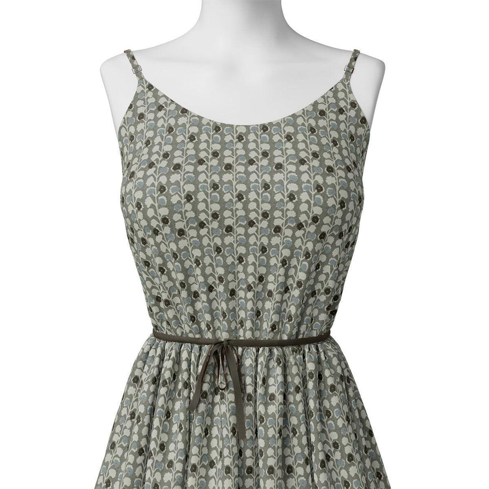 Beautiful Tiny Blue Plants Digital Printed Fabric - Rayon