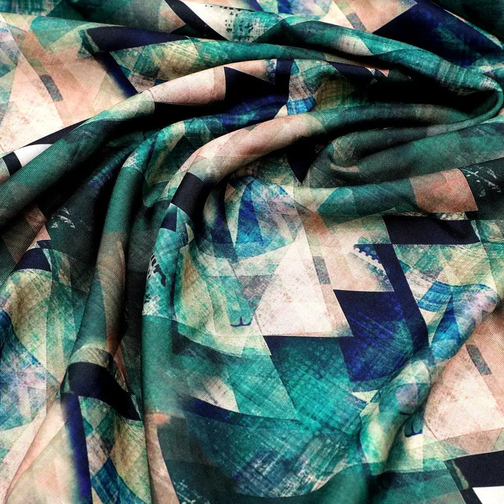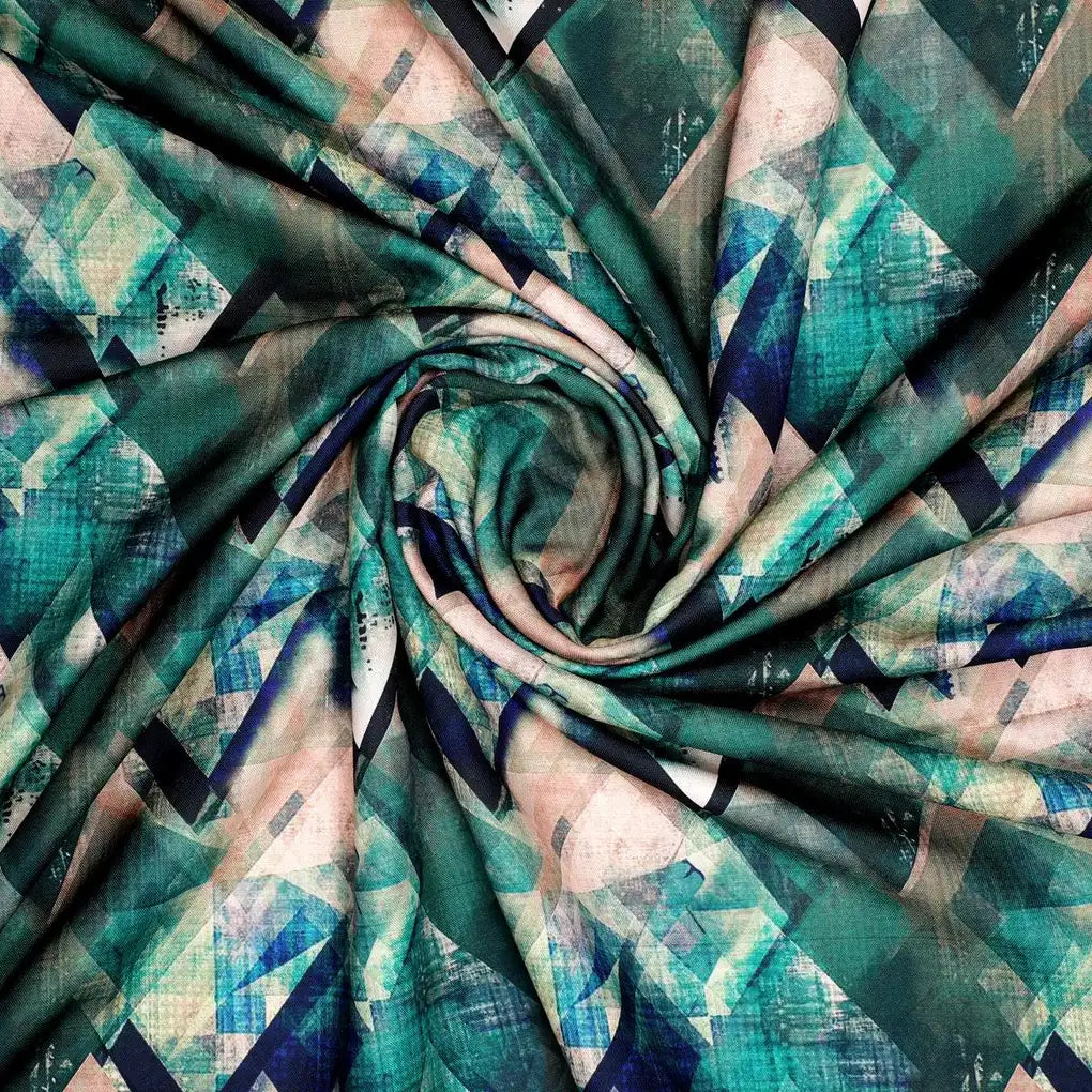 Harlequin Square And Hexagon Digital Printed Fabric - Rayon