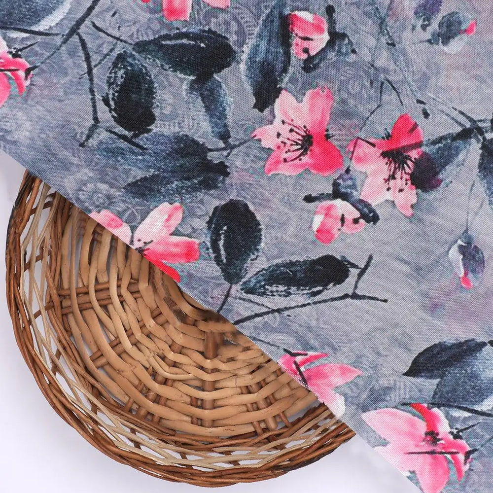 ₹ 333.50 per meterBeautiful Floral Vine Pink Base Digital Printed Fabric