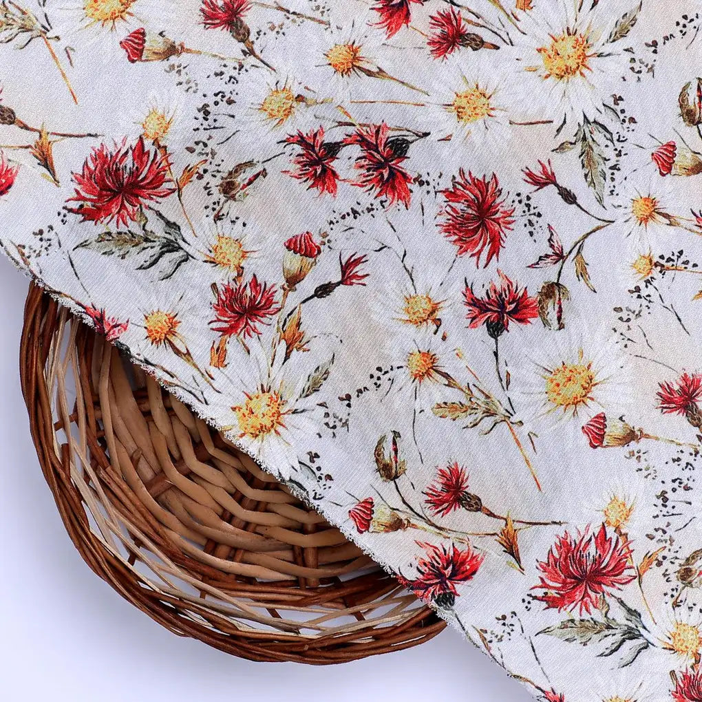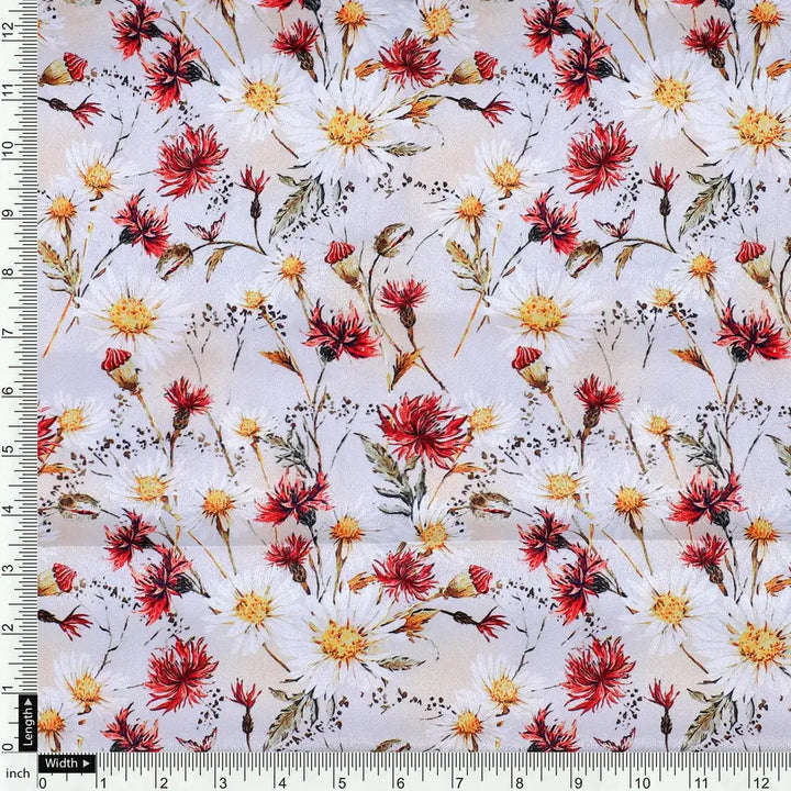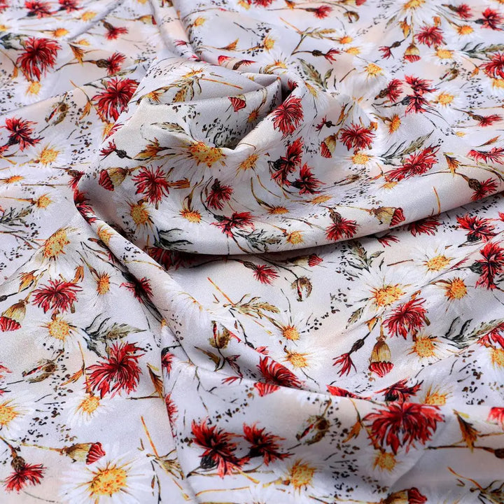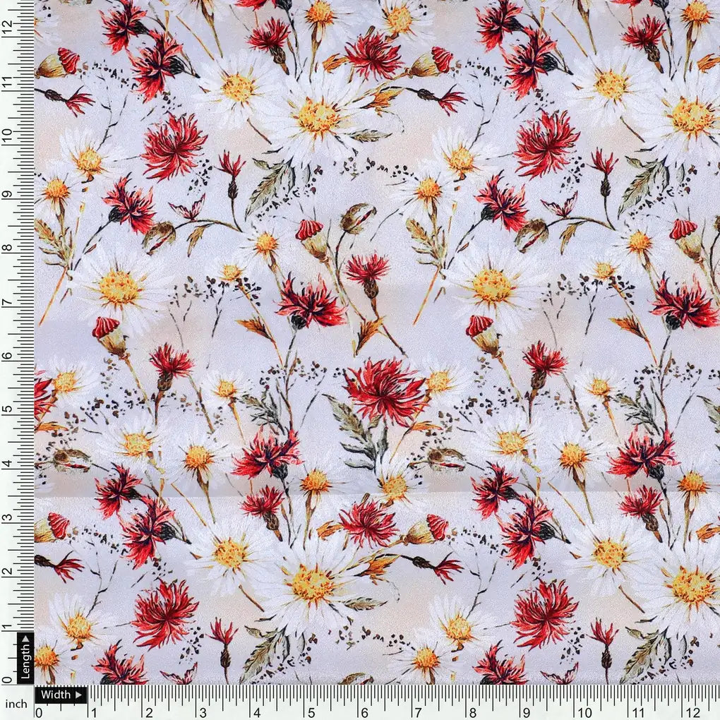 Daisy Branch Of White Flower Digital Printed Fabric - Silk Crepe