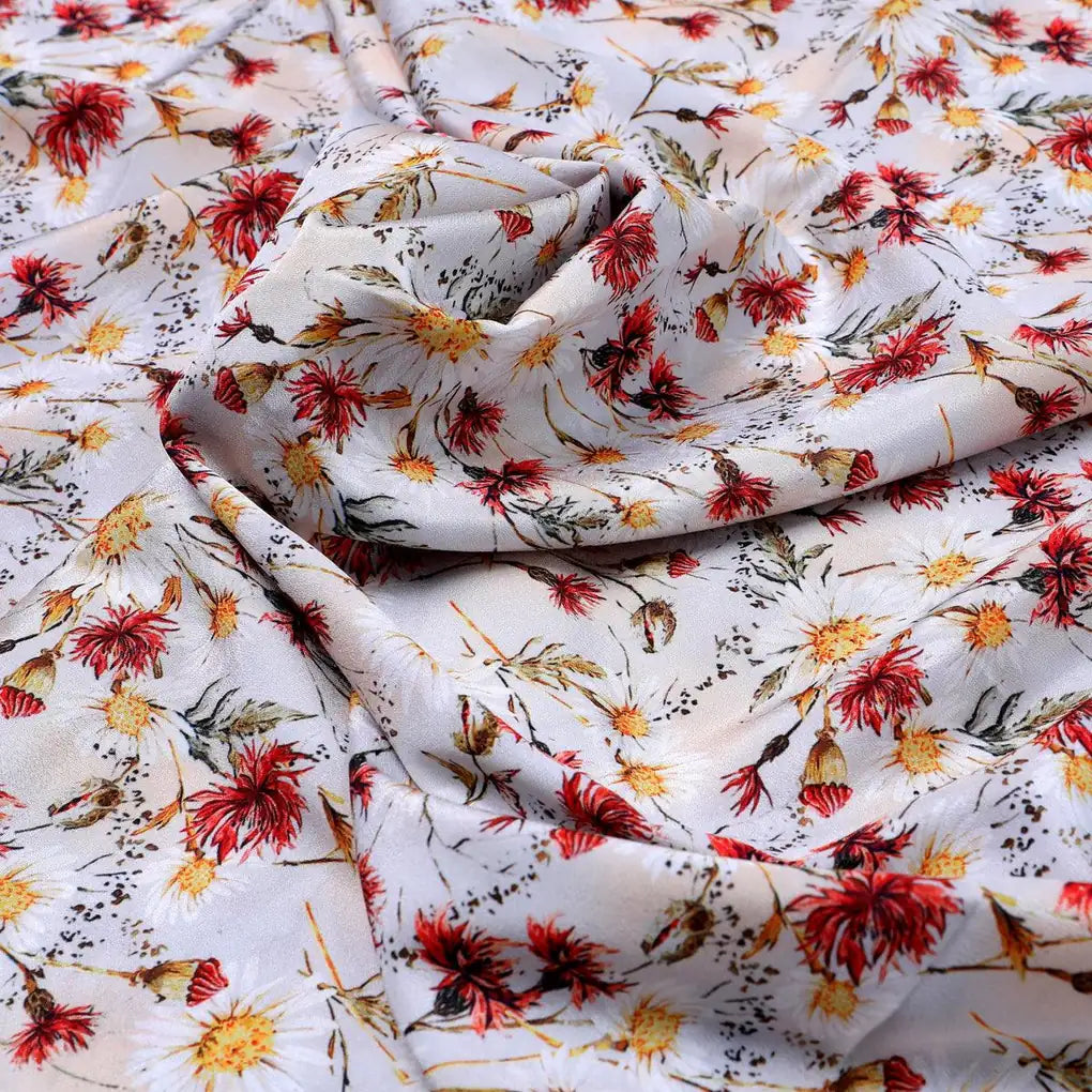 Daisy Branch Of White Flower Digital Printed Fabric - Silk Crepe – cr 0 ta06071 110 daisy branch of white flower digital printed fabric silk crepe 1