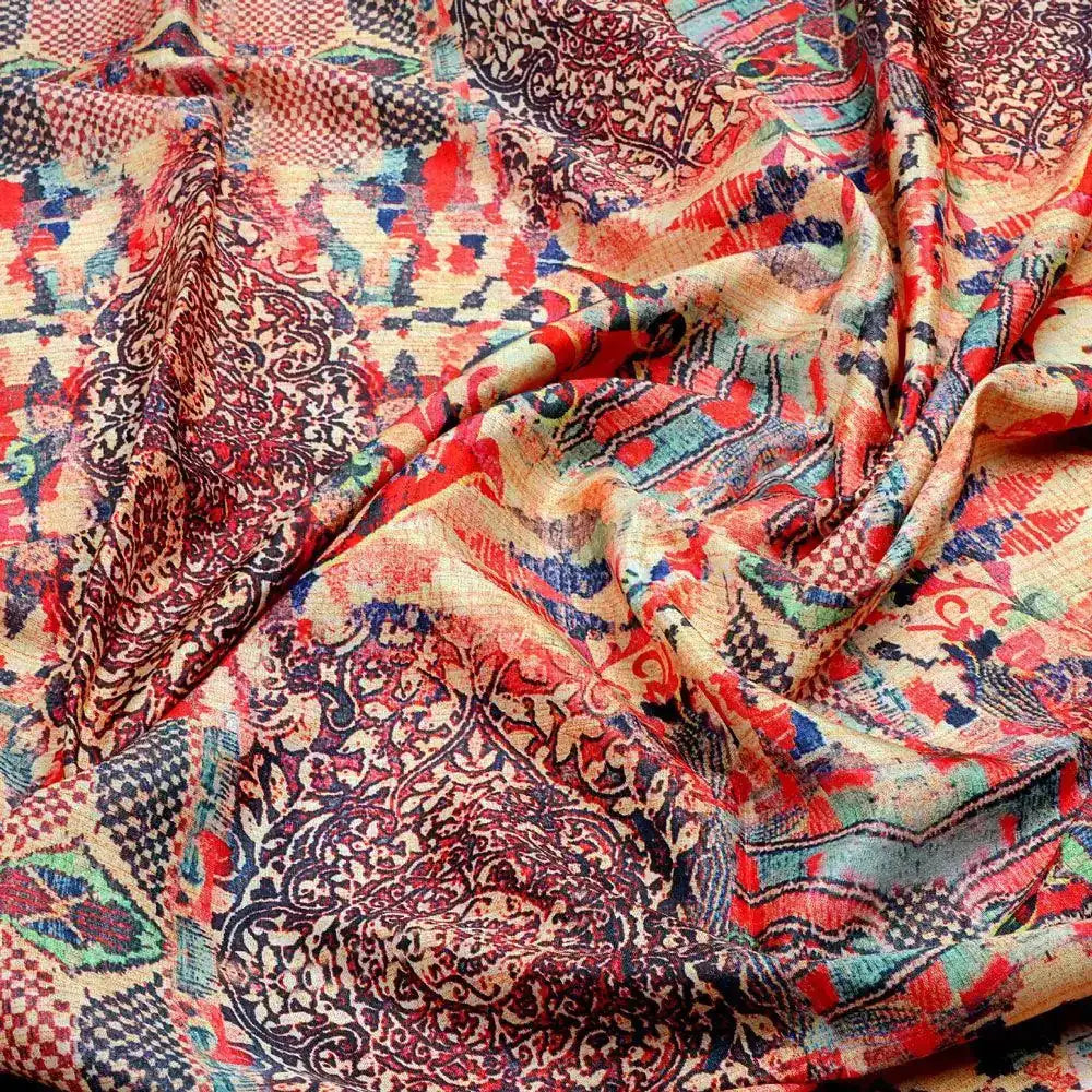 Are you looking for a beautiful and unique Damask Pattern Silk Crepe Unstitched Printed Fabric? Look no further than FAB VOGUE Studio! Our high-quality Polyester fabric is perfect for creating fashionable dresses and accessories. With a vibrant Multicolor pattern, this fabric will make any outfit stand out.