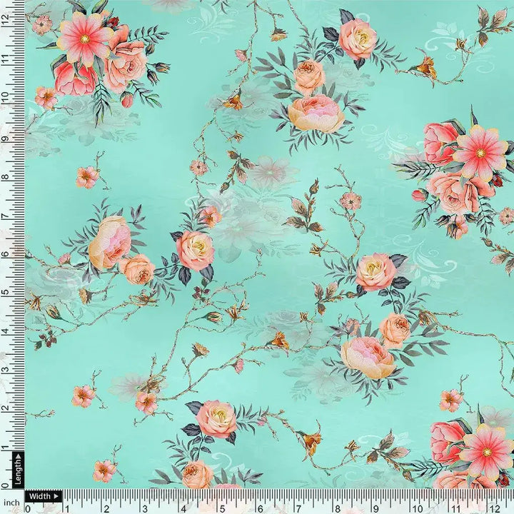 Flower Branch Allover Digital Printed Fabric - Crepe