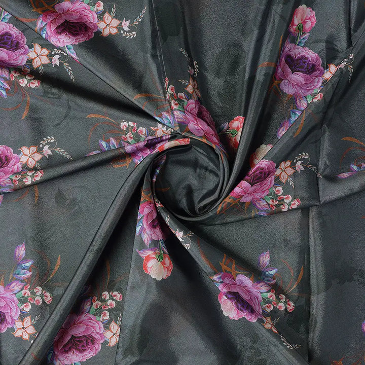 Lovely Peony With Wax Flower Digital Printed Fabric - Silk Crepe