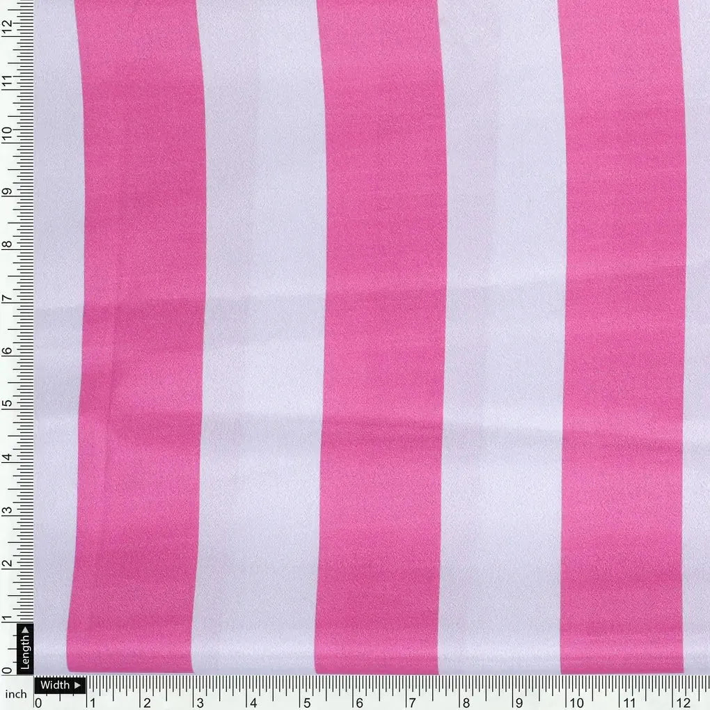 Peach And Pink Stripes Digital Printed Fabric - Crepe