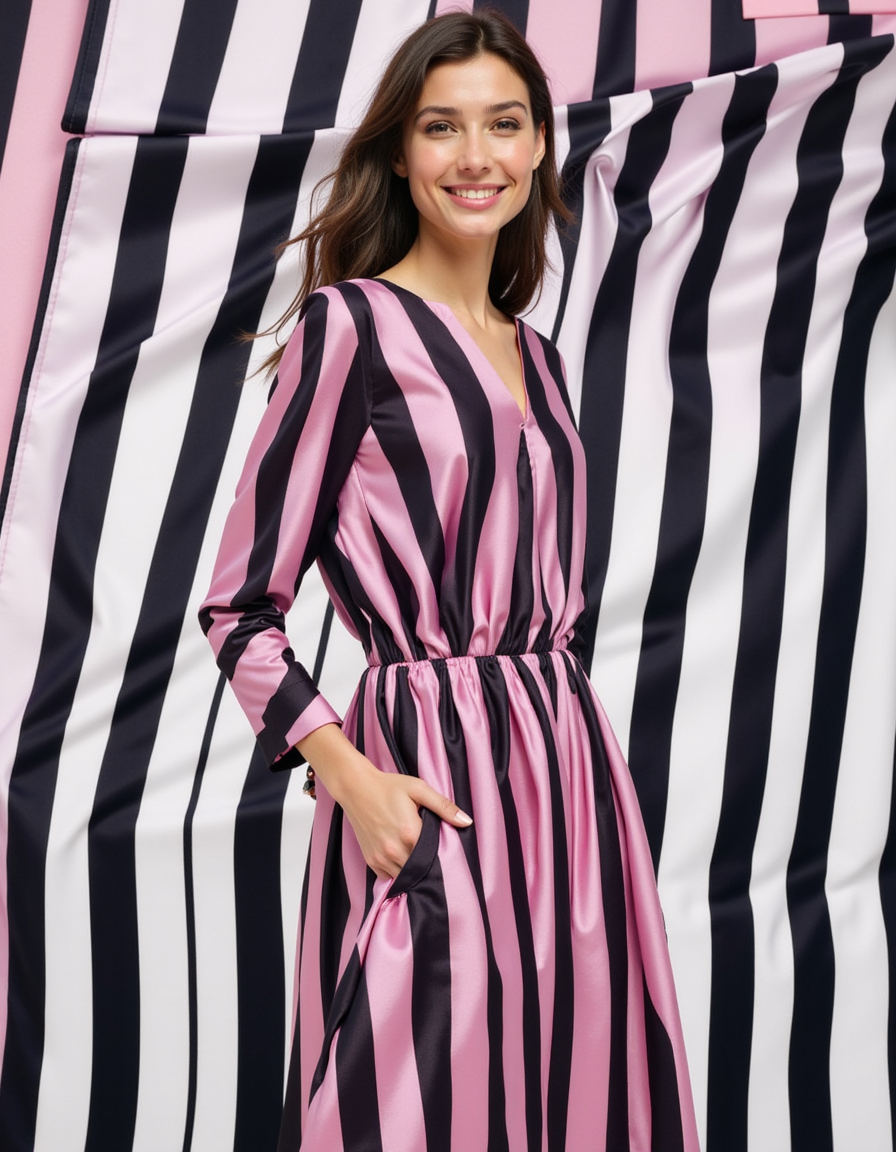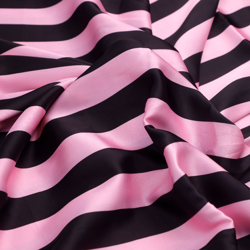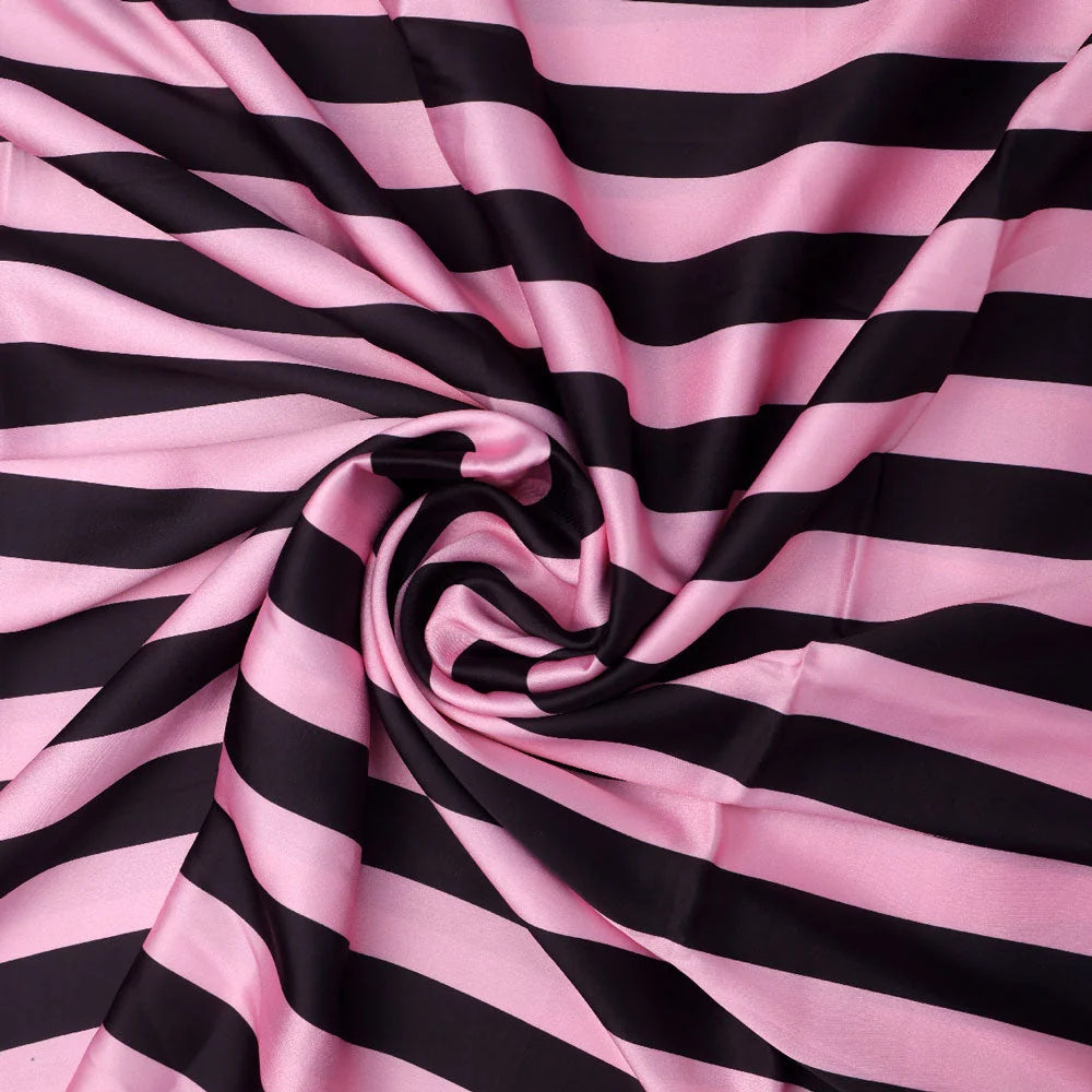 Black and Pink Striped Digital Printed Fabric is trendy and stylish, and the Japan satin fabric is soft and luxurious. This fabric is sure to add a touch of class to any project.