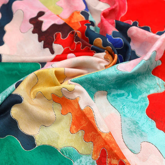 Morden Paint Of Art Multicolour Digital Printed Fabric - Silk Crepe