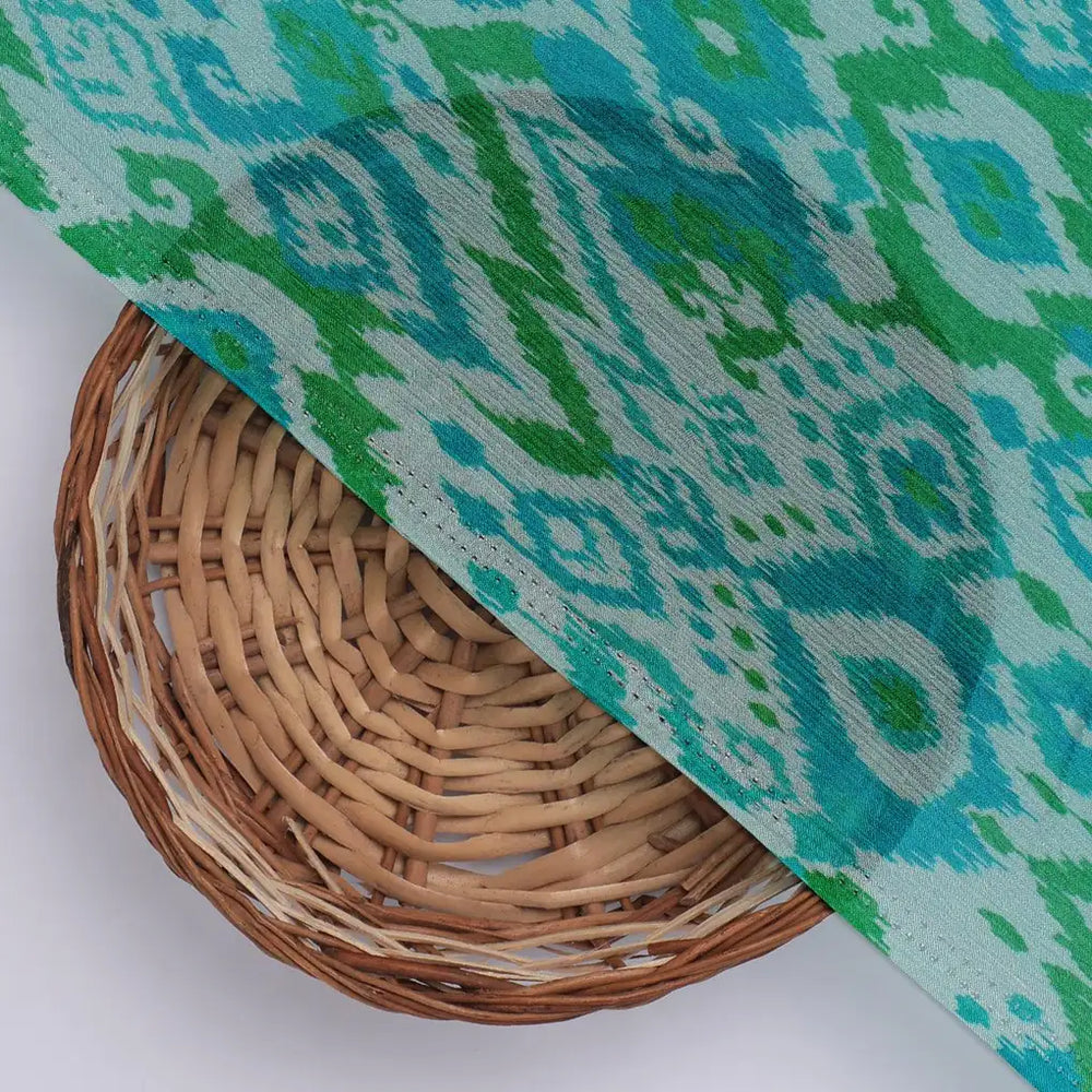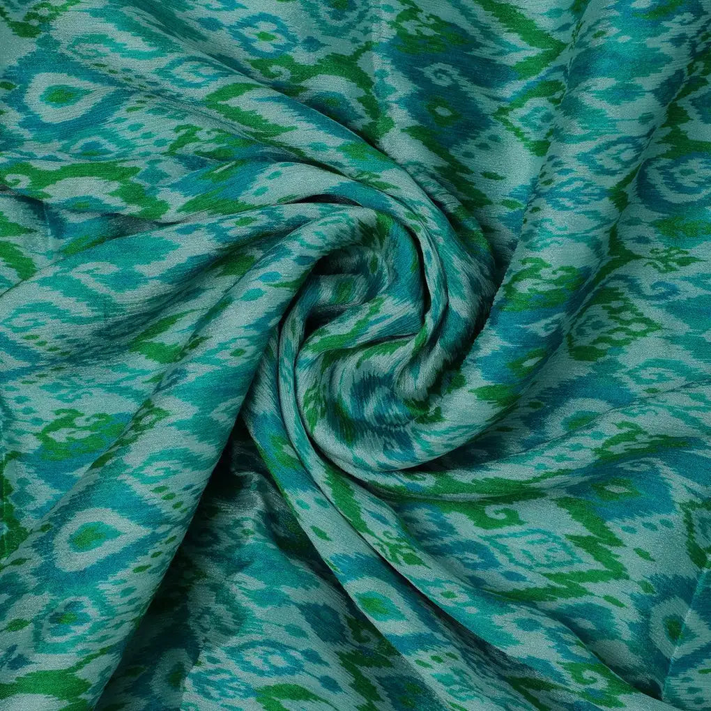 Morden Multicolour Ikat Repeat Digital Printed Fabric - Tusser Silk