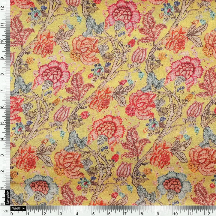 Darkolivegreen Jacobean Pure Muslin Printed Fabric Material