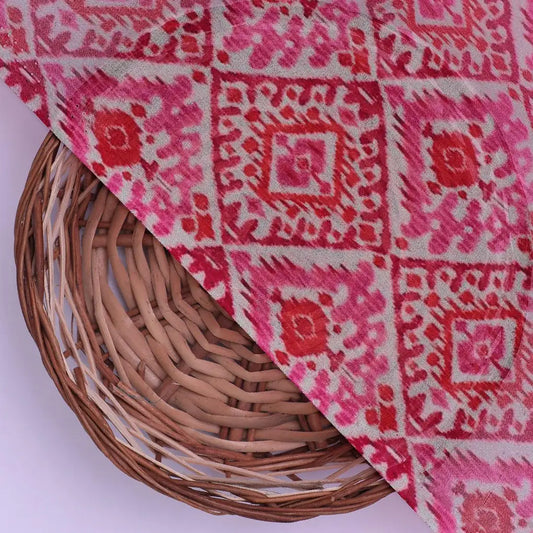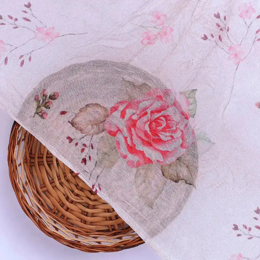 Pink Rose Allover Digital Printed Fabric - Kota Doria