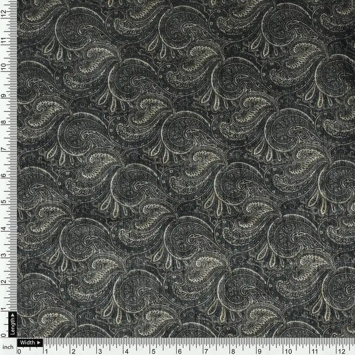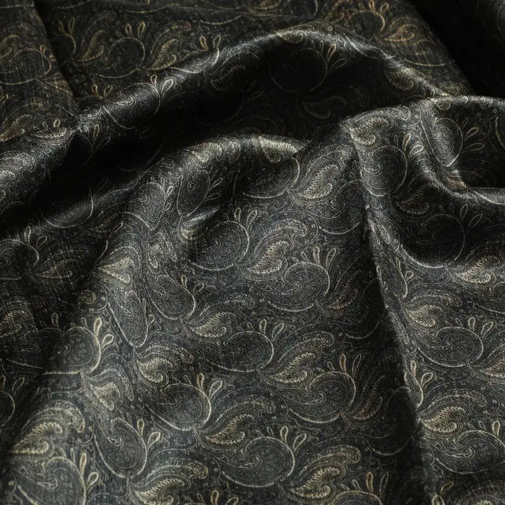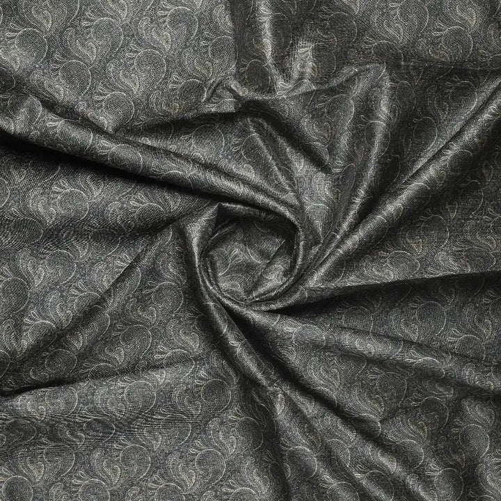 Introducing FAB VOGUE Studio's Creative Jecobean Curly Art Tusser Silk Clothing Printed Fabric! This high-quality fabric is made of Polyester and features a unique paisley pattern in black. It is perfect for creating stylish and sophisticated garments and accessories. The fabric is lightweight and soft to the touch, allowing you to create comfortable and stylish pieces. Whether you're looking to create a dress, a blouse, or a scarf, this fabric is ideal for any project. With its unique pattern and color, you'll be sure to make a statement with your creations.