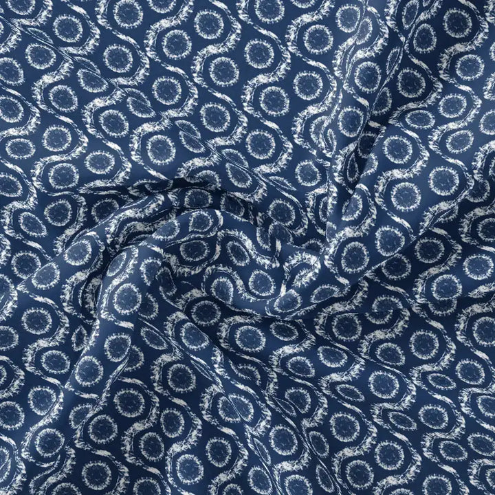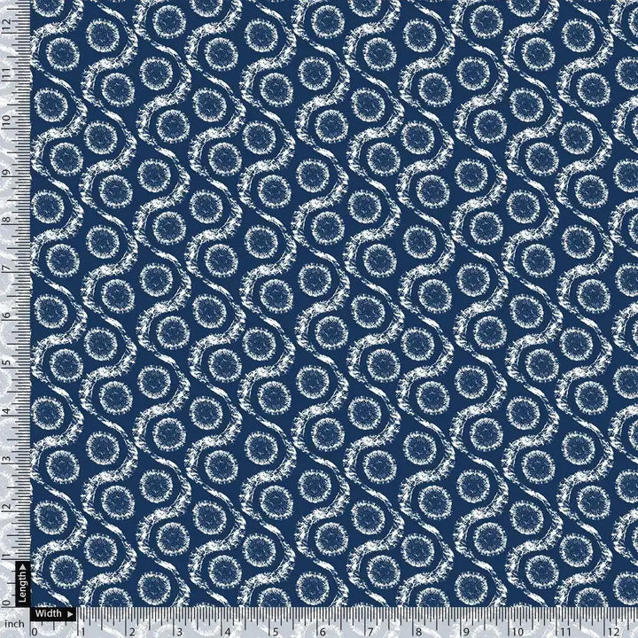 Seamless Vermicular Pattern With Blue Colour Digital Printed Fabric - Upada Silk