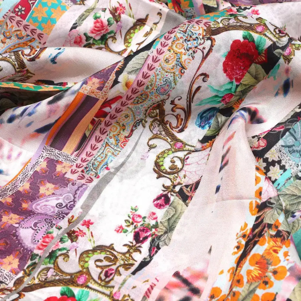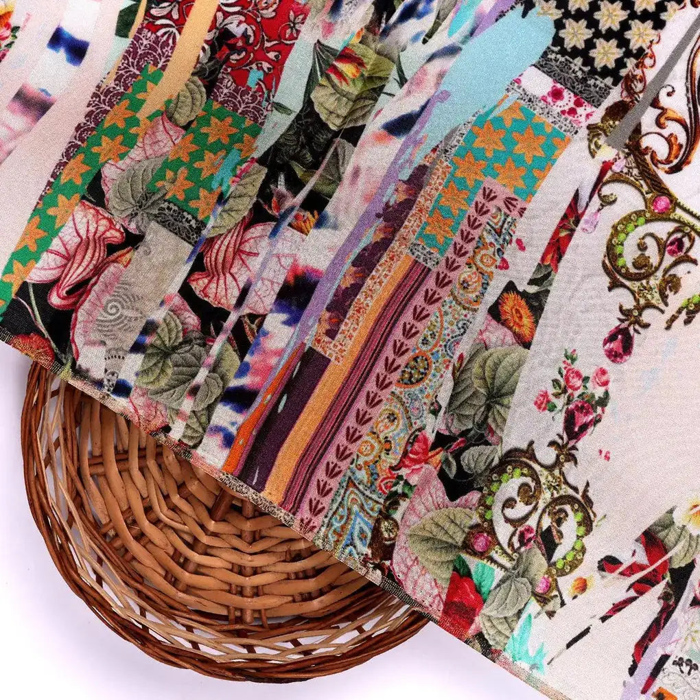 Introducing the Watercolour Paint Art With Pattern Upada Silk Unstitched Printed Fabric from FAB VOGUE Studio! This beautiful fabric is made from high-quality Viscose fabric and features a captivating multicolor abstract pattern. Perfect for making eye-catching dresses, this fabric is sure to make you stand out from the crowd. The vibrant colors and intricate pattern give this fabric a unique look that is sure to be admired.