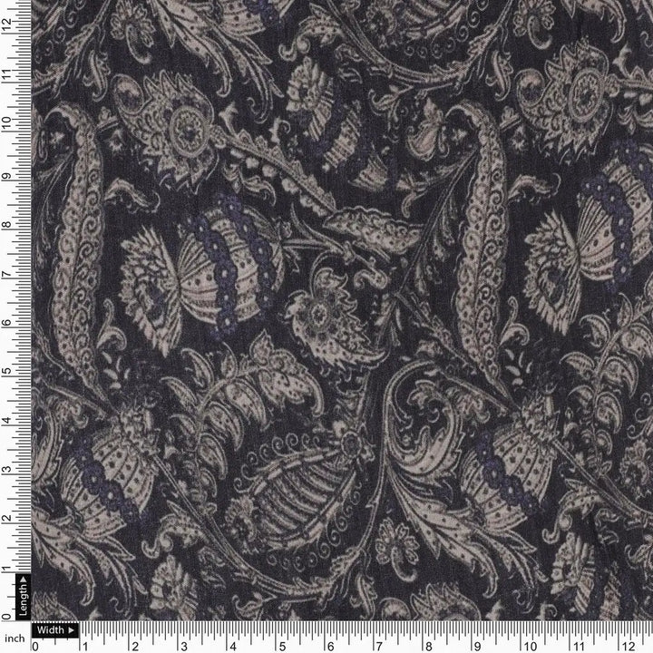 Brown Paisley Seamless Digital Printed Fabric - Pure Muslin