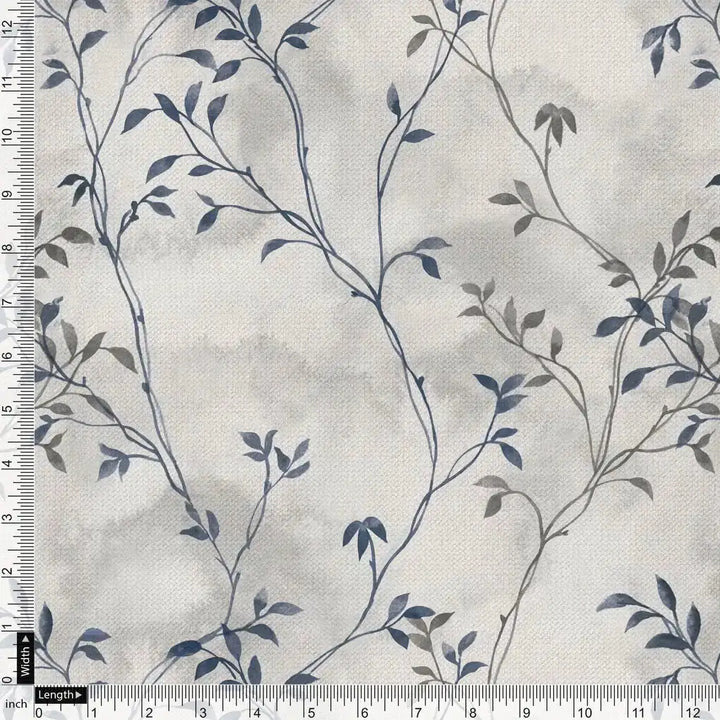 Leaves Vines Over Dusty Grey Base Digital Printed Fabric