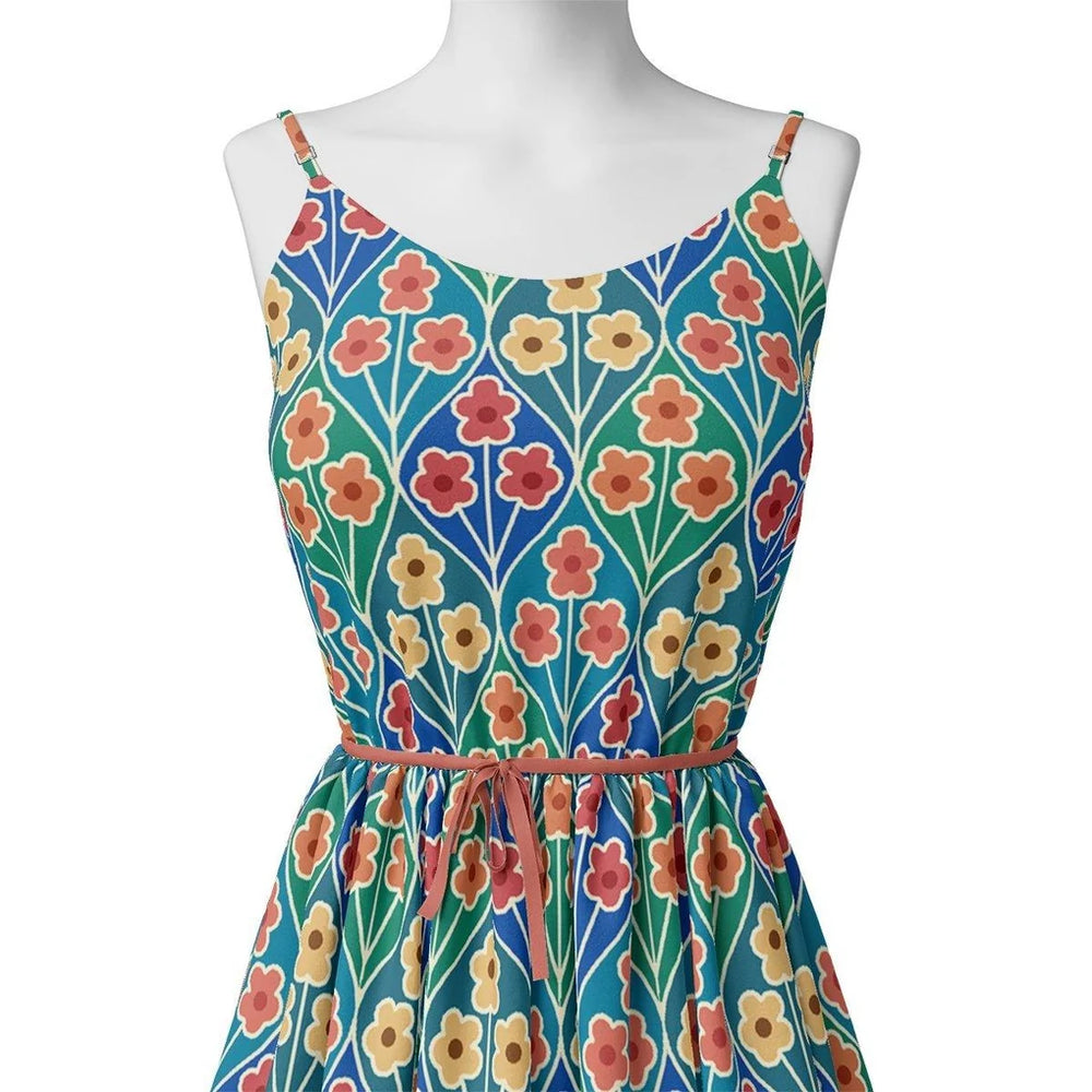 Beautiful Ditsy Flowers On Blue Digital Printed Fabric - Pure Chinon